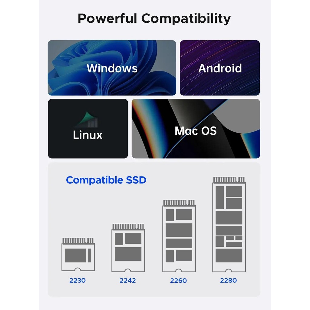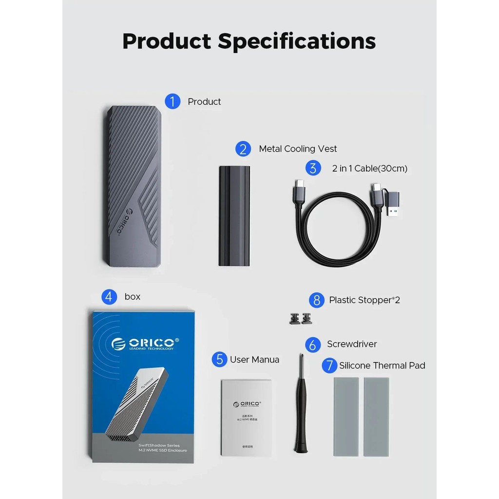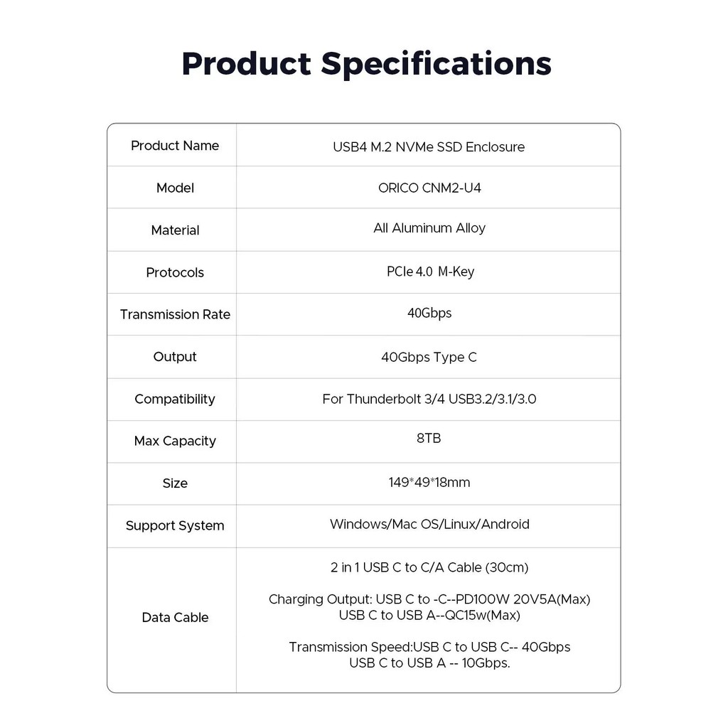 ORICO USB4 40Gbps M.2 SSD Enclosure NVME USB Type C Gen2 M2 NVMe SSD Case Aluminum for Nvme PCIE SSD Disk Box with Cooling Fan(CNM2-U4)