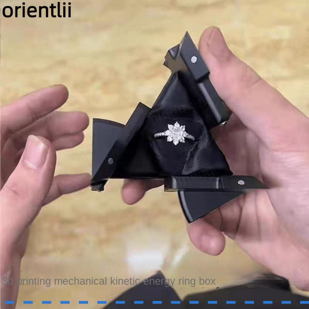 ORIENTLIIY Kinetic Energy Ring Box, Cube Boxes Portable Mechanical Deformation Jewelry Box, Cool Rotating Jewelry Storage Display Hold