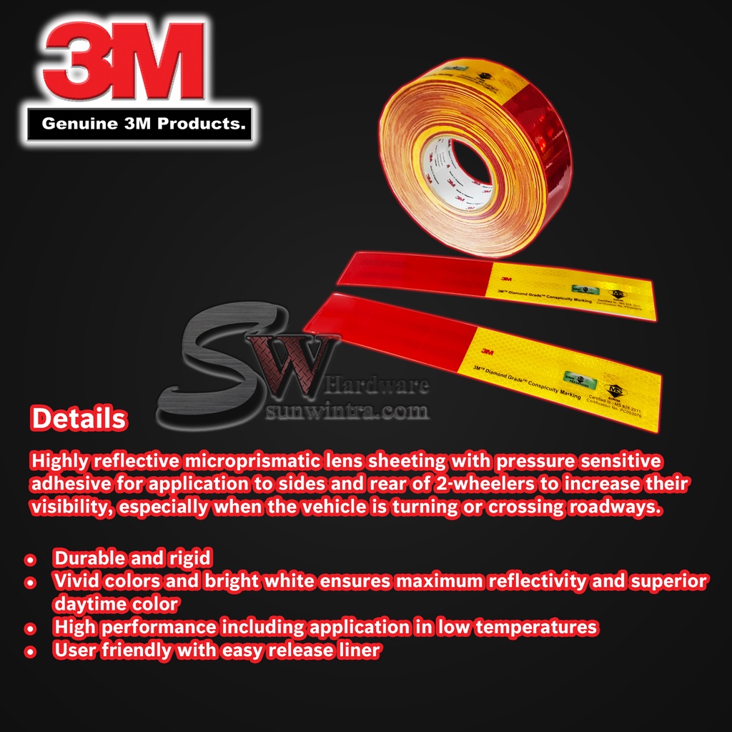 ORIGINAL 3M 2inch x 50 Yard CONSPICUITY MARKING (RED/YELLOW) 50.8mm x 45M+- Lorry Reflective Side Marking Lorry Sticker