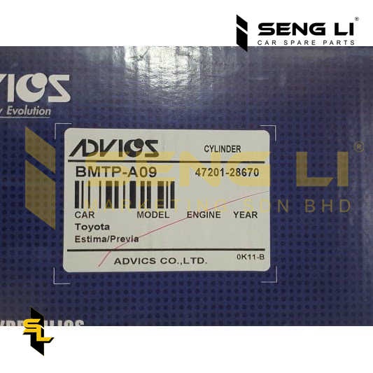 ORIGINAL ADVICS TOYATA ESTIMA ACR50 BRAKE MASTER PUMP 9MM/11MM