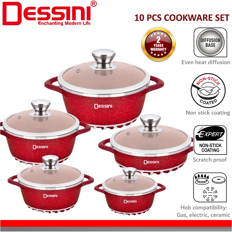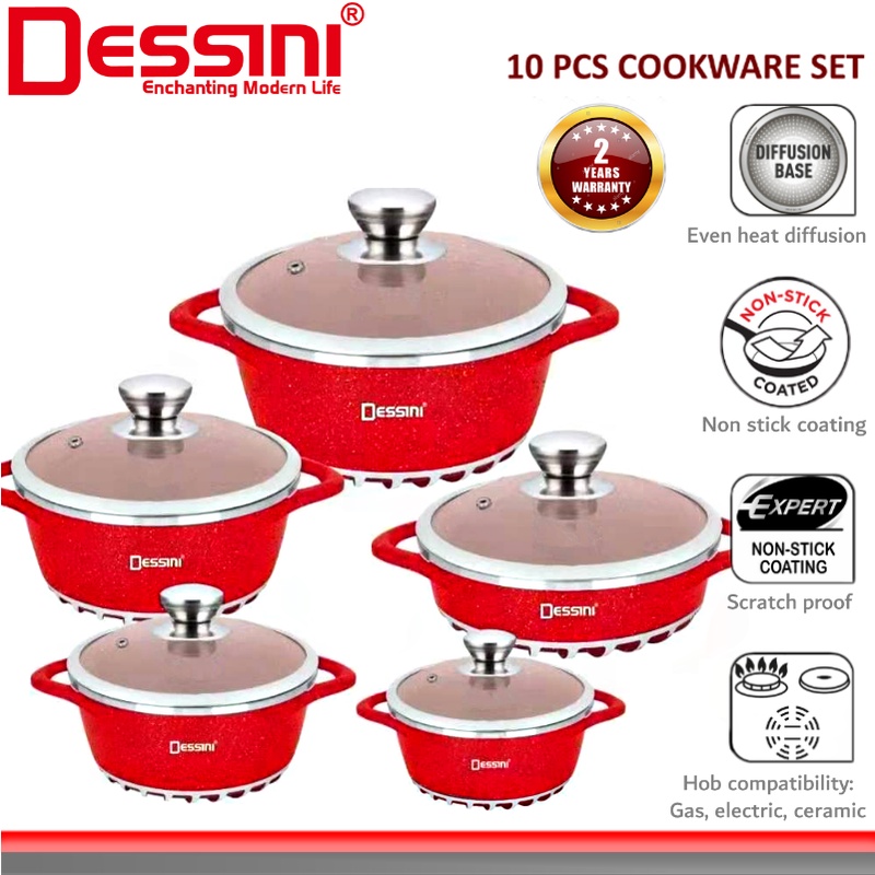 ORIGINAL - DESSINI ITALY JE-10-S Die Cast Aluminium 10 Pcs Casserole Non Stick Pot Bowl Fry Pan Cookware Tool PERIUK