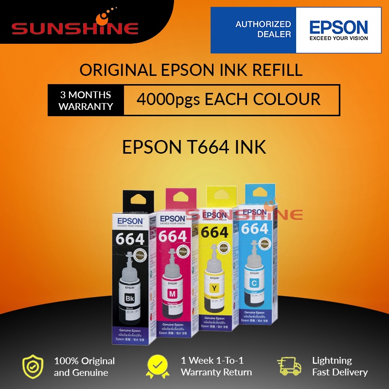 ORIGINAL EPSON T664 Refill Ink L120 L121 L210 L360 L405 L565 L385 L1300 L310 6641 6642 6643 6644 664