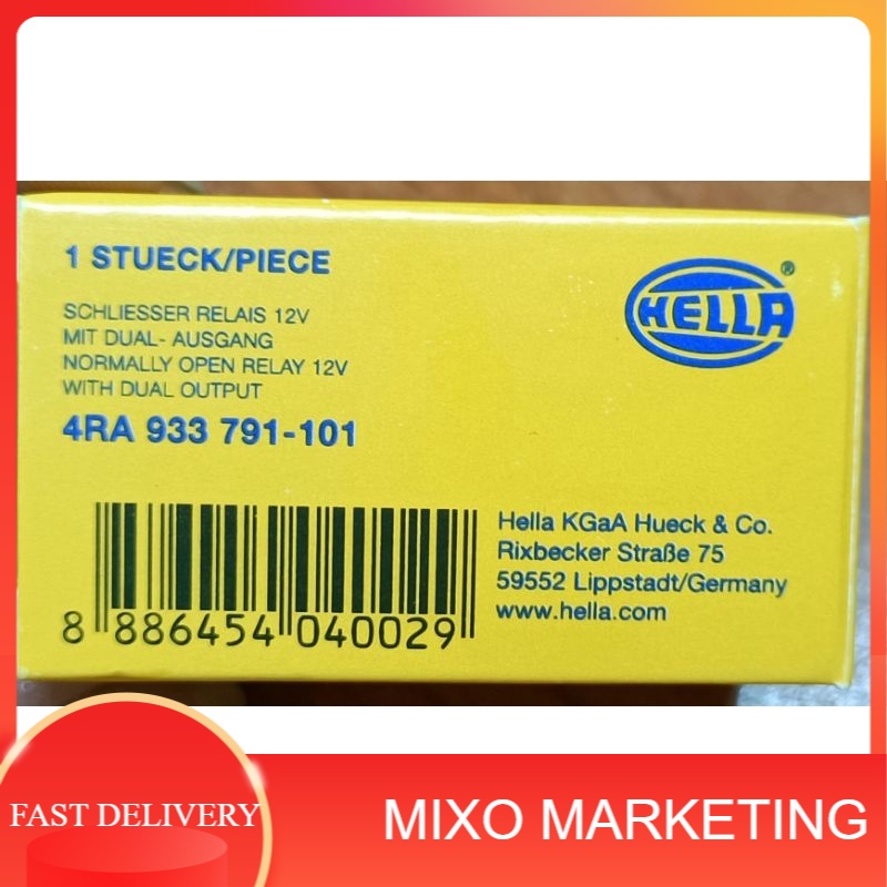 ORIGINAL HELLA RELAY 4RA 933 791 101 12V 30A 5PIN RELAY