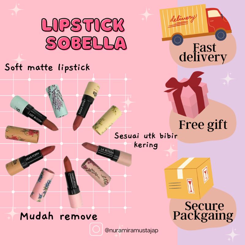 ORIGINAL HQ LIPSTICK SOBELLA JUST BLOOM SWEET PETAL LA ROSSA SUGAR HONEY DEAR POPPY