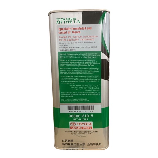 ORIGINAL JAPAN TOYOTA ATF TYPE-IV VIOS ALTIS WISH CAMRY HILUX FORTUNER INNOVA ESTIMA HARRIER AVANZA AUTO GEAR OIL T4 T-4