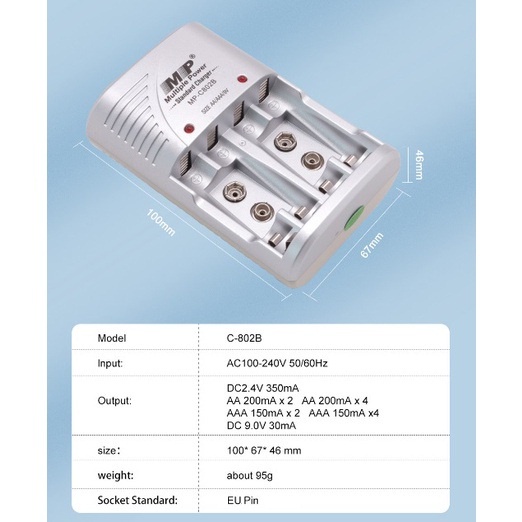 ORIGINAL MPC802B Rechargeable AA / AAA / 9V Battery NiMH NiCd Multiple Standard Re-charge Charger