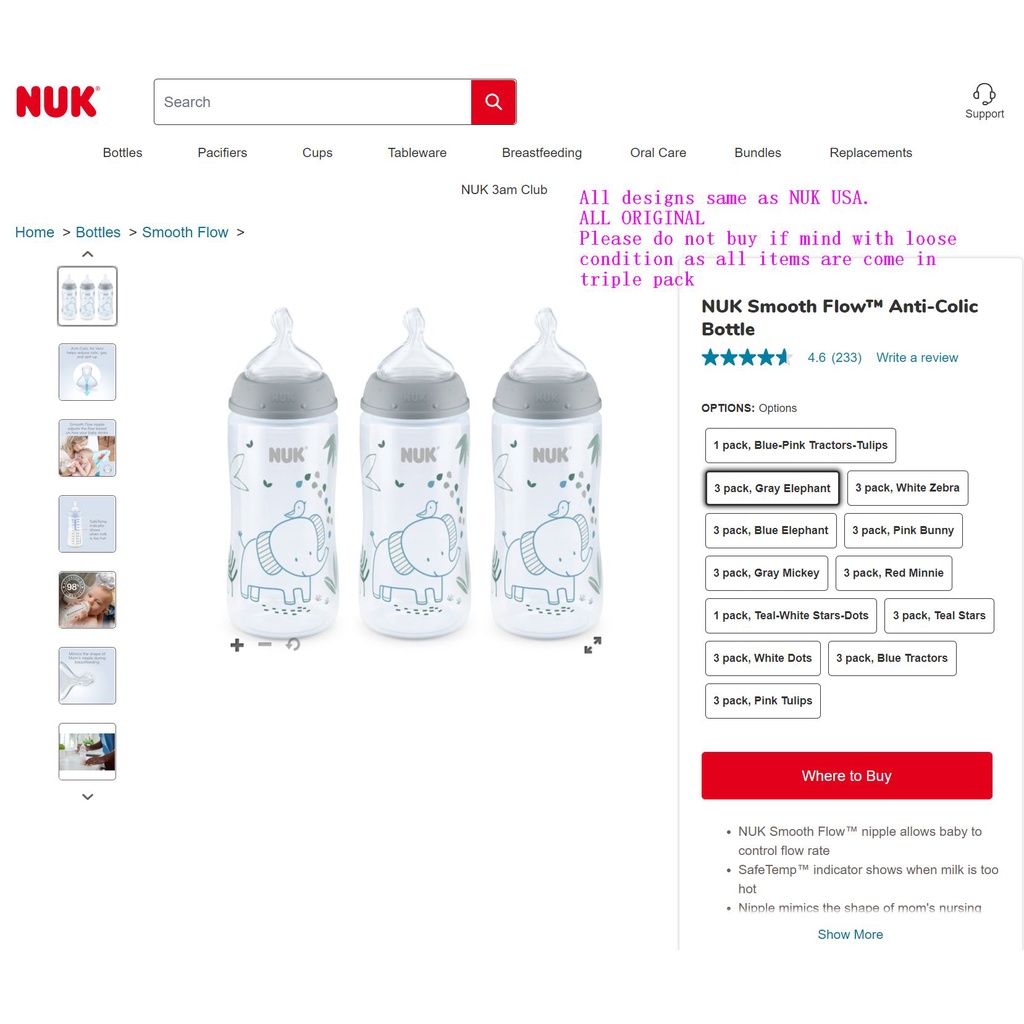ORIGINAL NUK Smooth Flow Anti-Colic Wide Neck Bottle W Safe Temperature Indicator Bottle 10 oz/5oz- Loose Single Pack