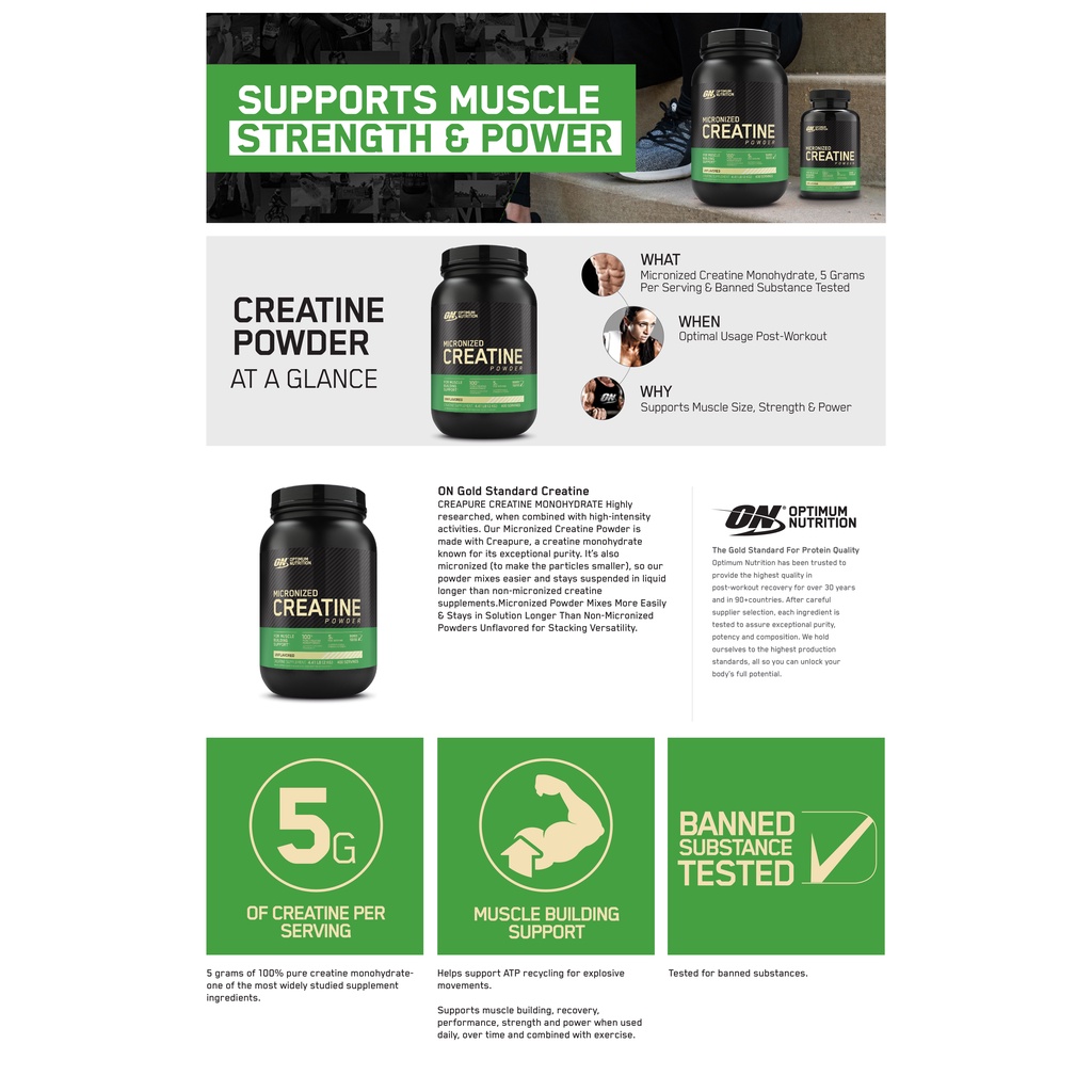 ORIGINAL Optimum Nutrition Micronized Creatine Powder - ON Post Workout, Creatine, Muscle Strength & Endurance