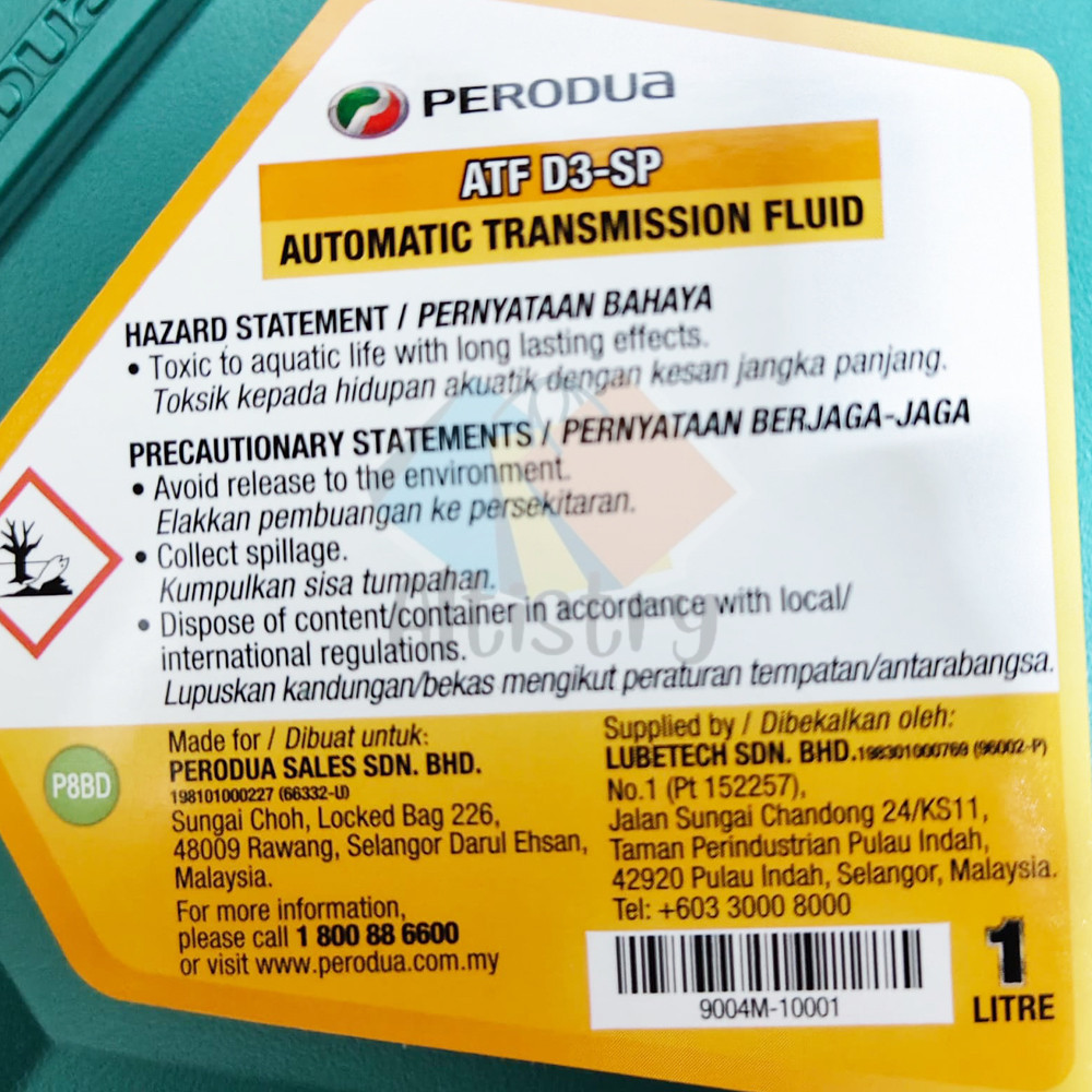 ORIGINAL PERODUA ATF D3-SP AUTOMATIC TRANSMISSION FLUID 1L FOR PERODUA BEZZA, ALZA, AXIA, VIVA, MYVI