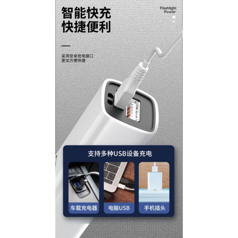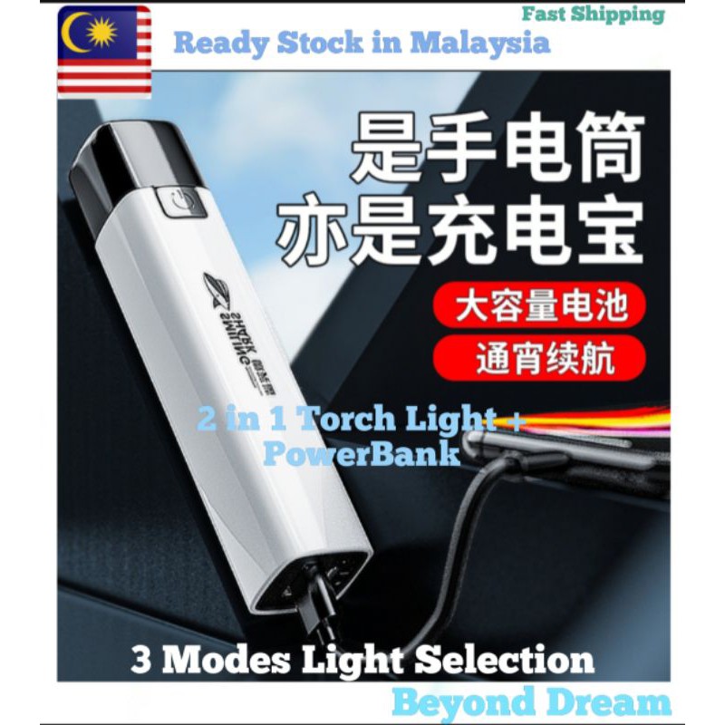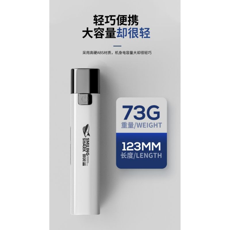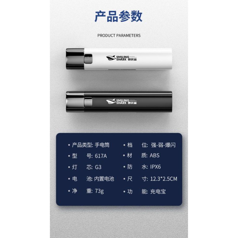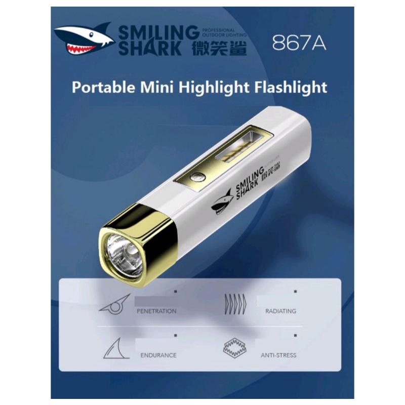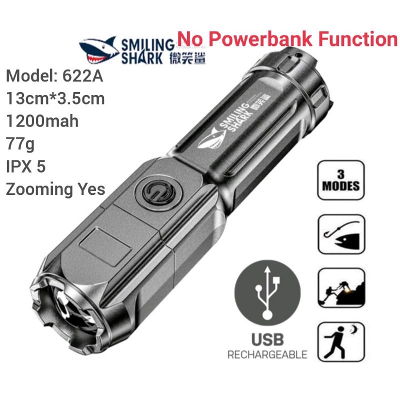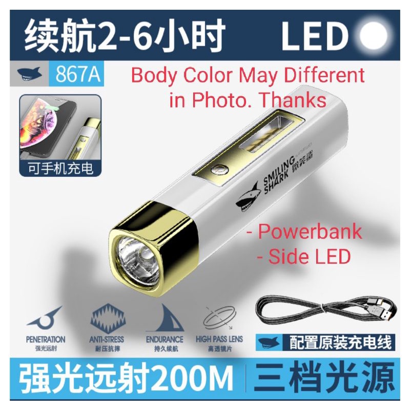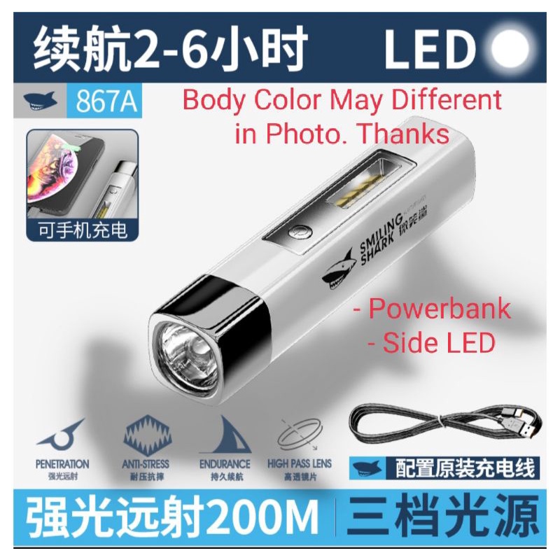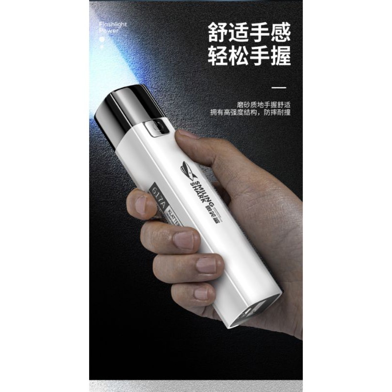 ORIGINAL SMILING SHARK Rechargeable Flashlight With Power Bank 2 in 1 Torchlight Mini LED Flashlight Lampu Suluh