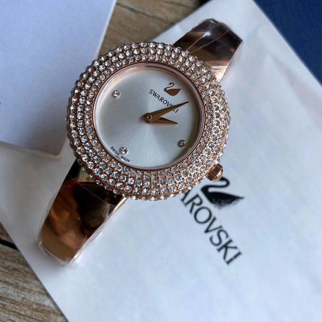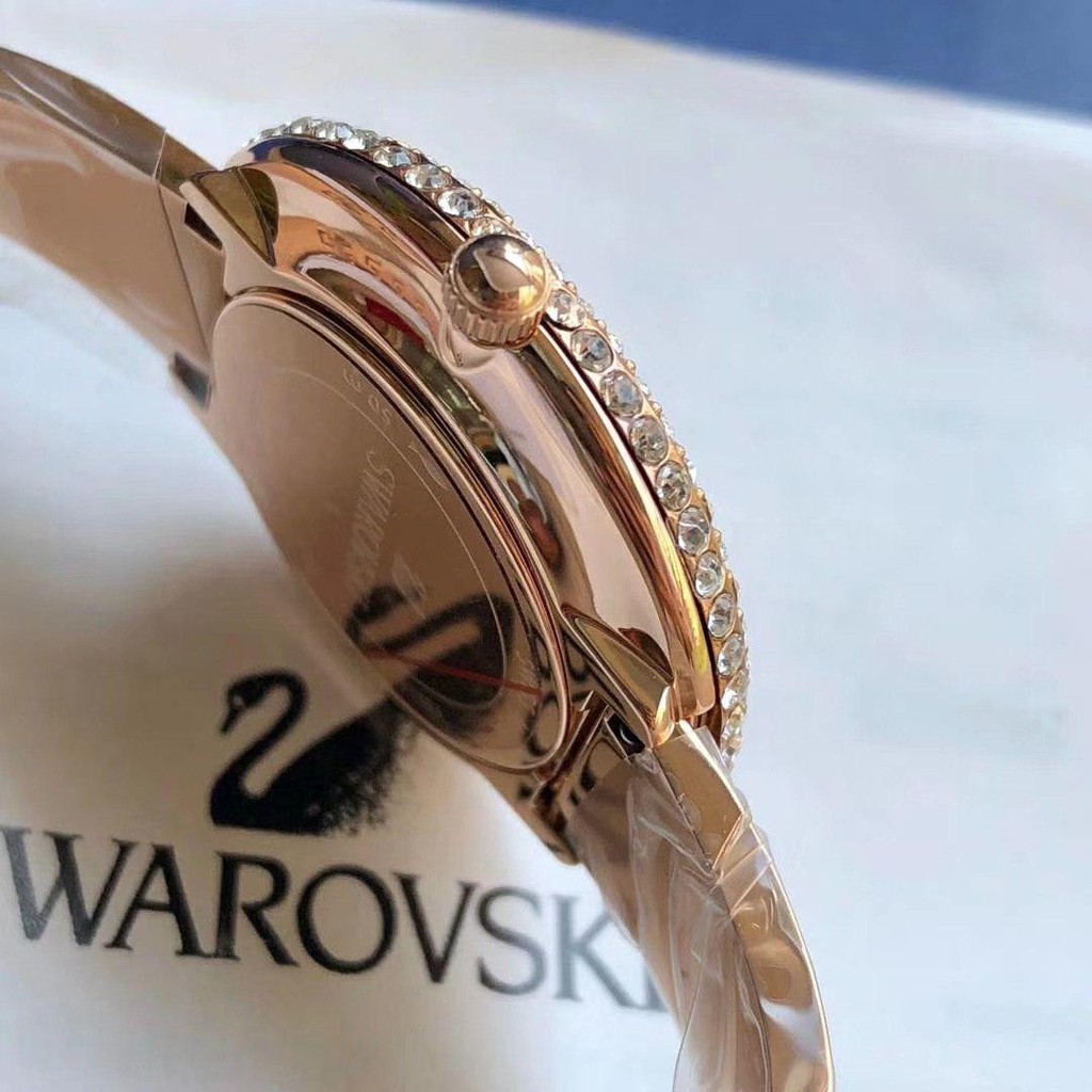 ORIGINAL SWAROVSKI CRYSTAL ROSE WATCH, METAL BRACELET, WHITE, ROSE-GOLD TONE PVD