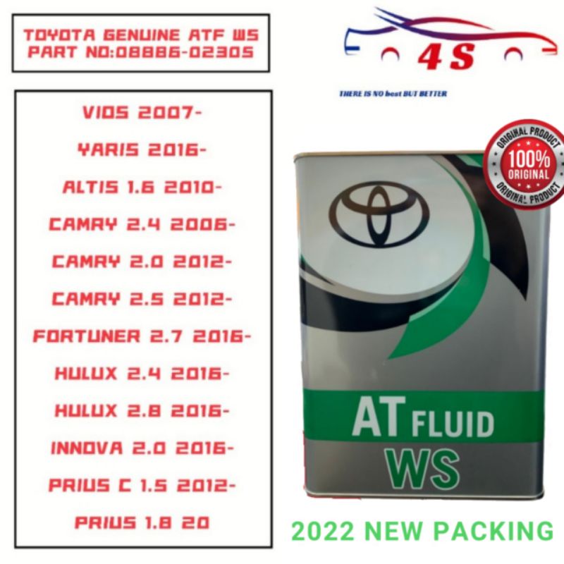 TOYOTA ATF WS AUTO OIL AVANZA F653 (2016>) VIOS NCP93 NCP150 ASU65 ACV40 ASV50 PRIUS 1.8 REVO GUN125