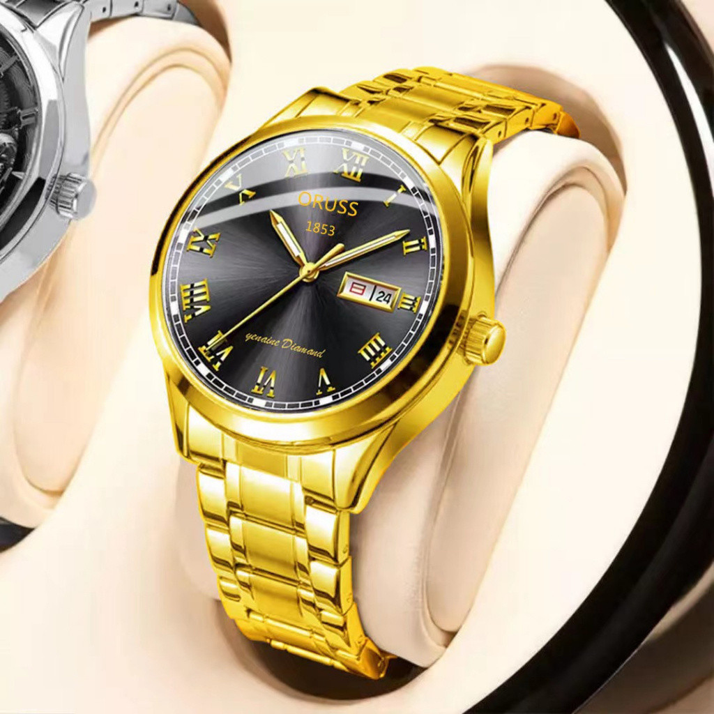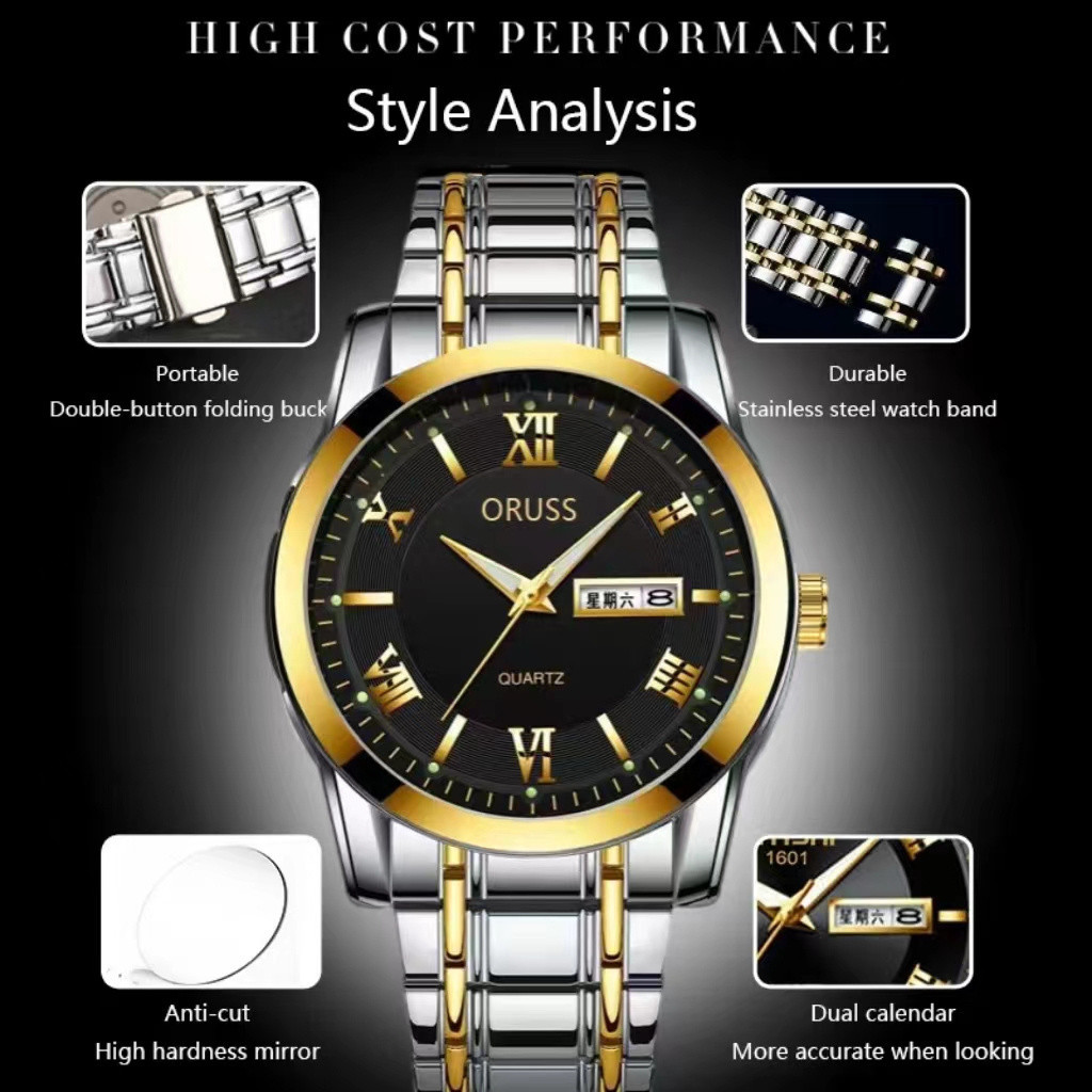 ORUSS Original Men/Women Waterproof Stainless Steel Luxury Dual Calendar Watch Men Analog Simple Ultra-Thin Luxury Business Automatic Quartz Wrist Watch For Men Jam Tangan Lelaki