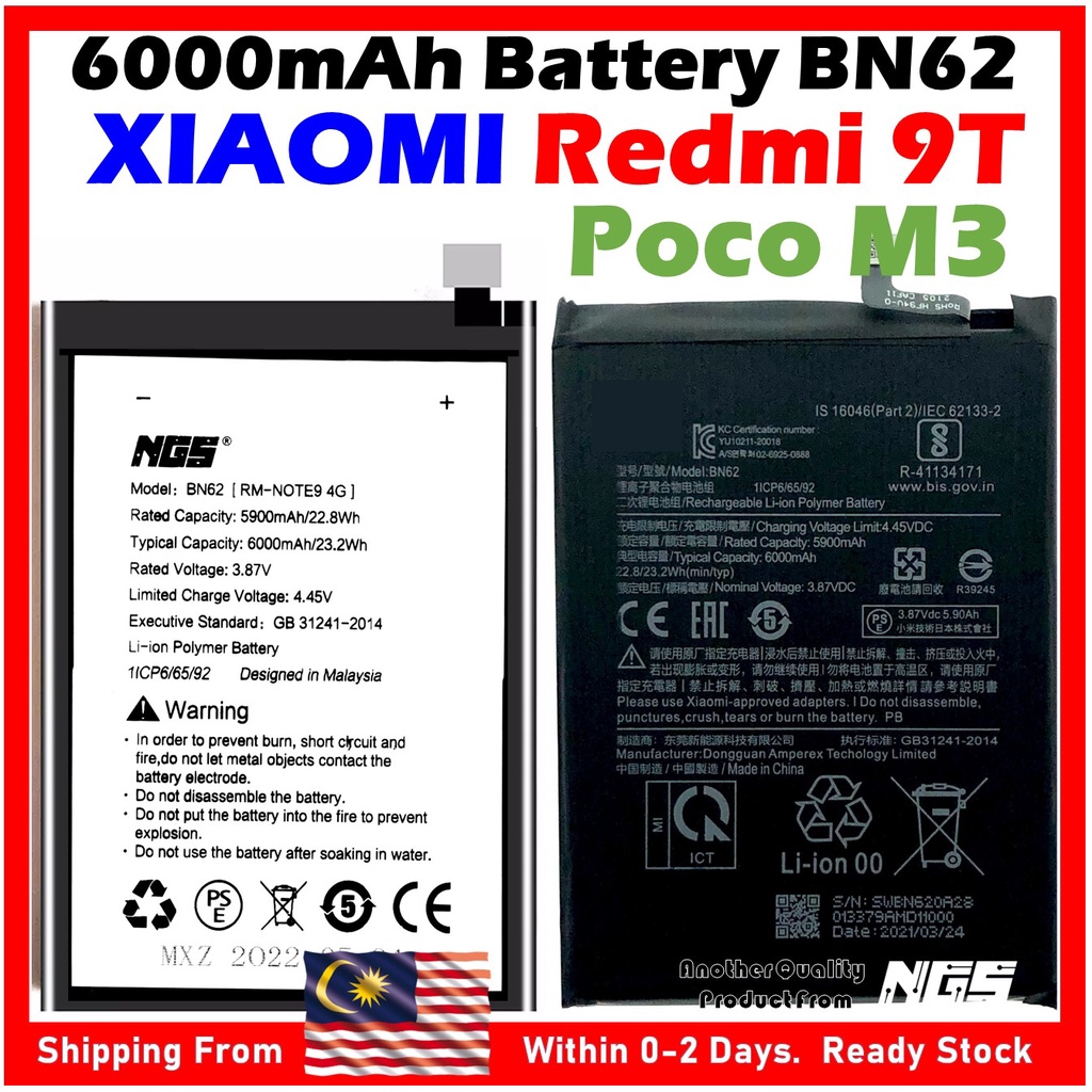 ORIGINAL NGS Brand 6000mAh Battery BN62 Compatible For Redmi 9T / POCO M3