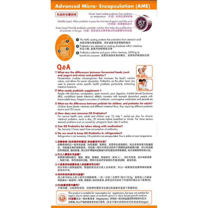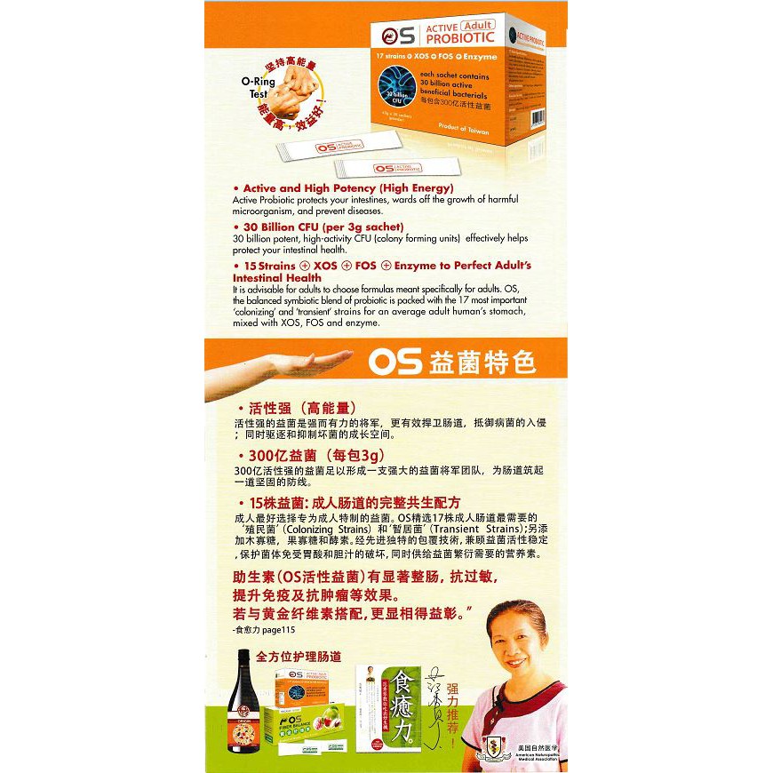 OS Active Probiotic 18 Sachets X 3G - 15 Strains + XOS + FOS +Enzyme (For Adult)