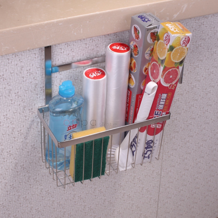 OS Kitchen 304 Stainless Steel Hanger Storage Basket Cabinet Door Hook Organizer Utensil Holder Rack