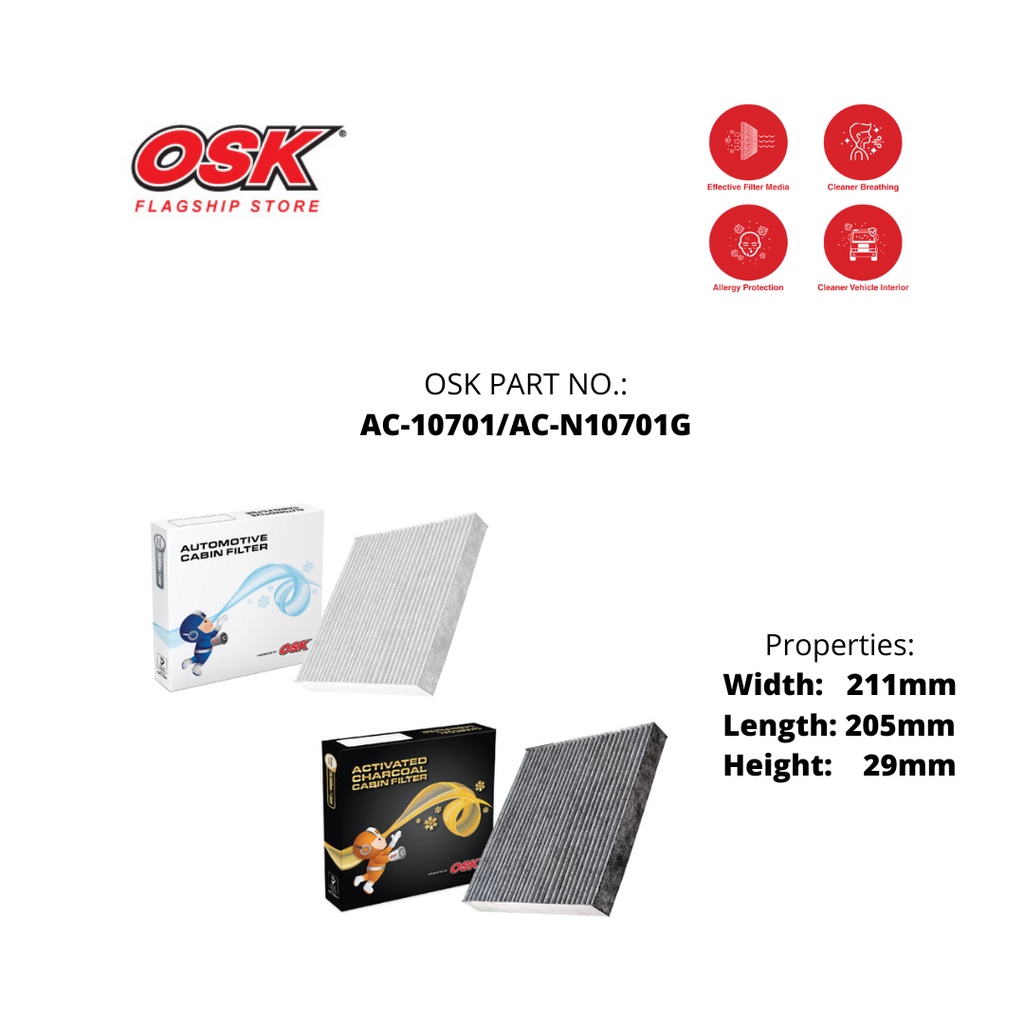 OSK Cabin FILTER for Honda City/Jazz/HRV/BRV(2008-2018)/Honda Civic FC/CRV WRV 2016-2021 80292-TG0-Q01