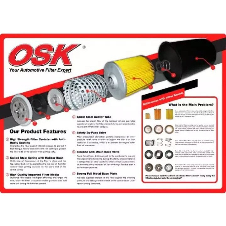 OSK Oil filter Perodua Oil Filter Axia Bezza Myvi Viva Aruz O-9100S / 15601-P2A12 - Penapis Minyak Kereta