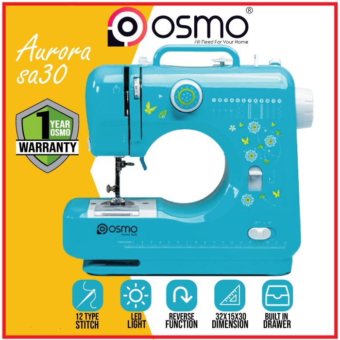 OSMO Portable Handheld Sewing Machine Dual Speed 12 Stitch Patterns Mesin Jahit Aurora SA30