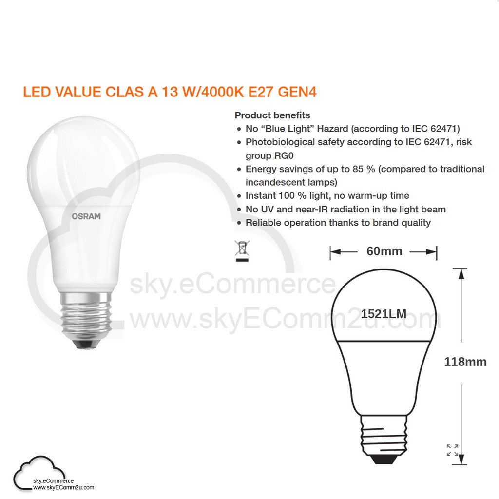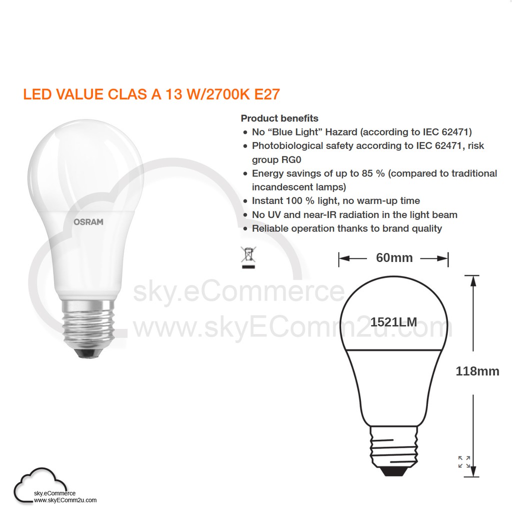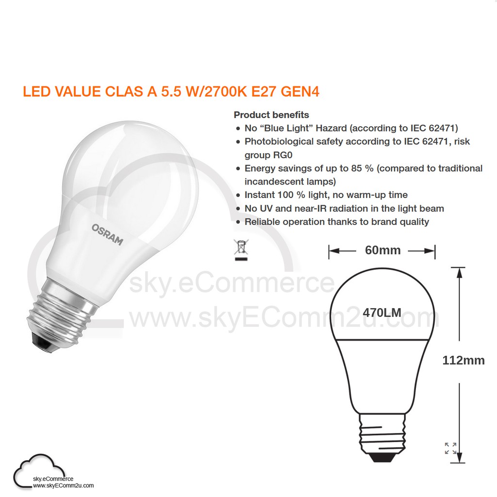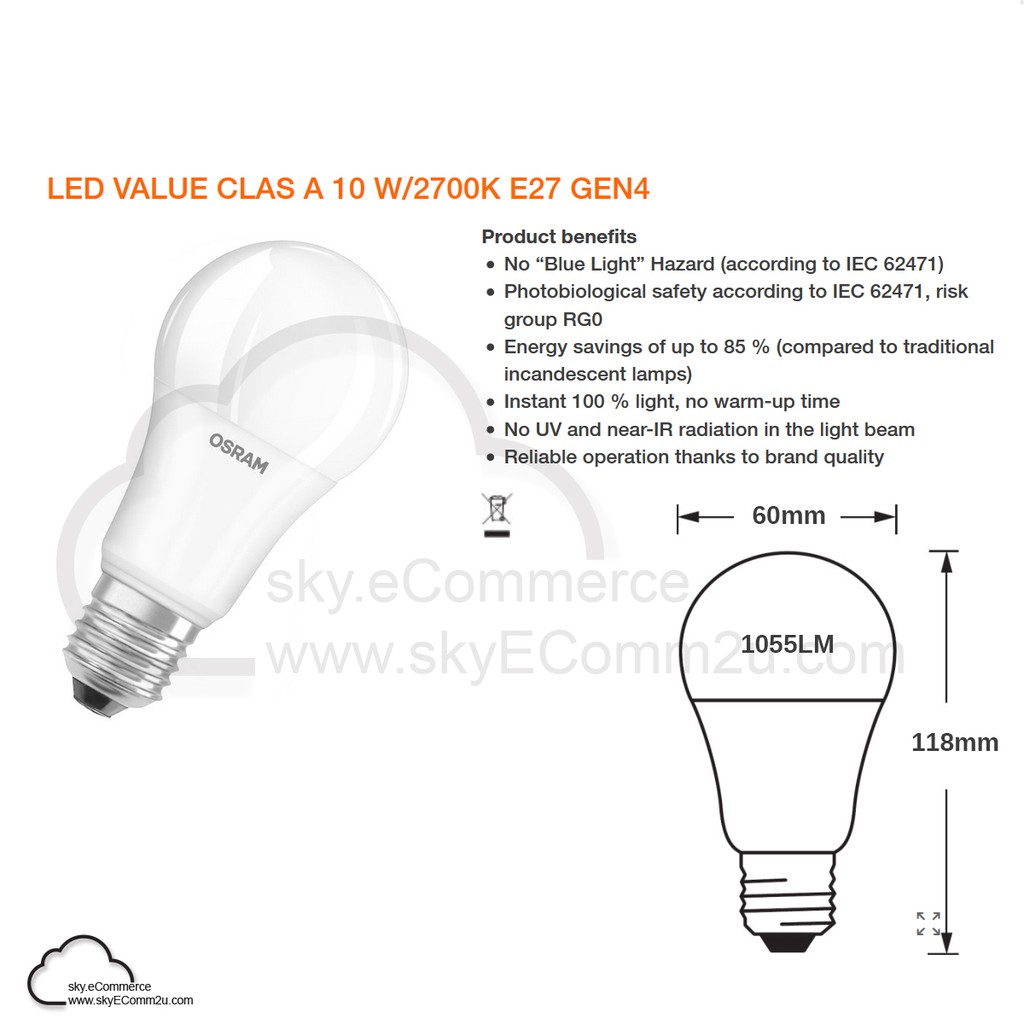 OSRAM 5.5W 8.5W 10W 13W LED Bulb Value Classic A60 A50 E27 6500K 2700K SIRIM
