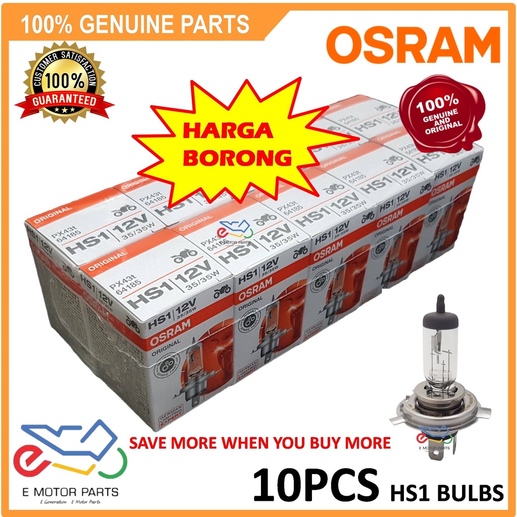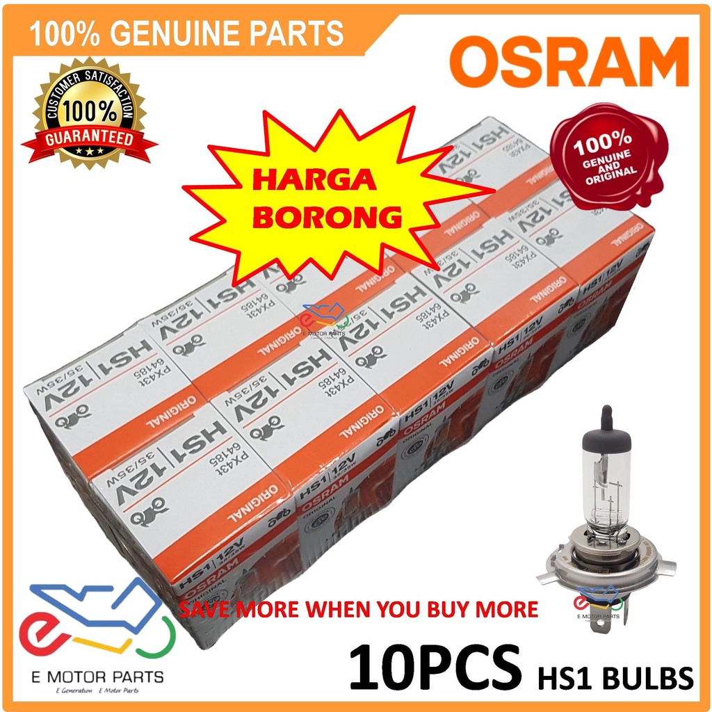 OSRAM BULB HS1 64185 12V P43T FZ 135LC NEW KAKI H4 HEADLIGHT HALOGEN BULB STANDARD 10PCS [100% ORIGINAL OSRAM] - 64185