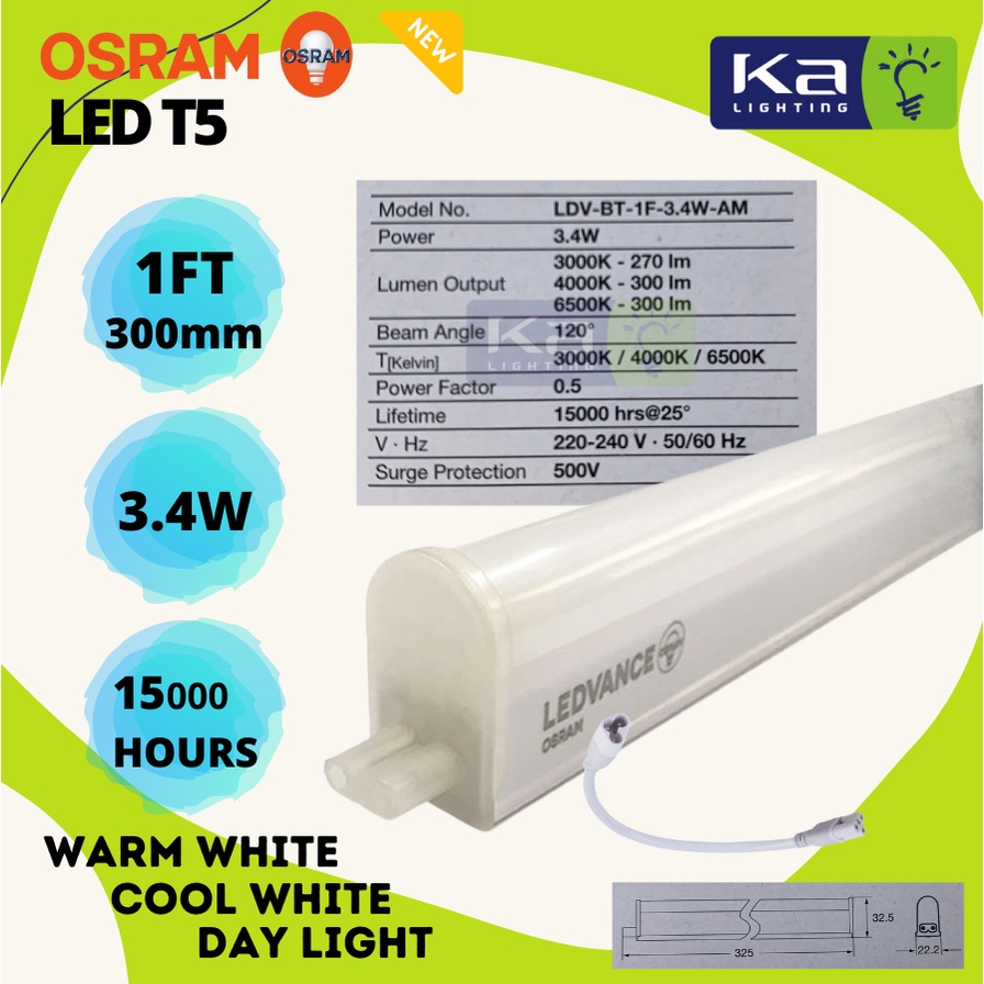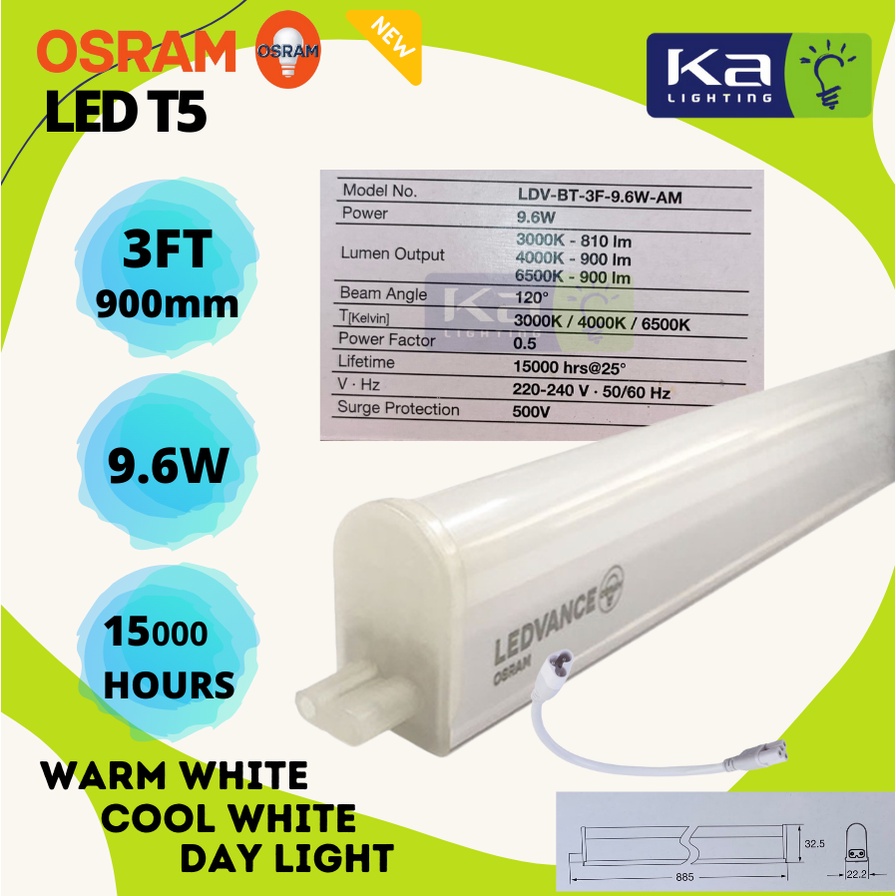 OSRAM LEDVANCE [1FT/ 2FT/3FT/4FT] LED T5 Batten