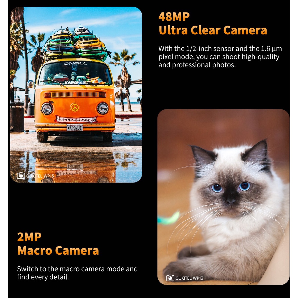 OUKITEL WP13 5G Infrared Thermometer Rugged Handphone (8GB+128GB/Android 11/NFC/5280mAh/6.52"HD+/48MP/MT6833)