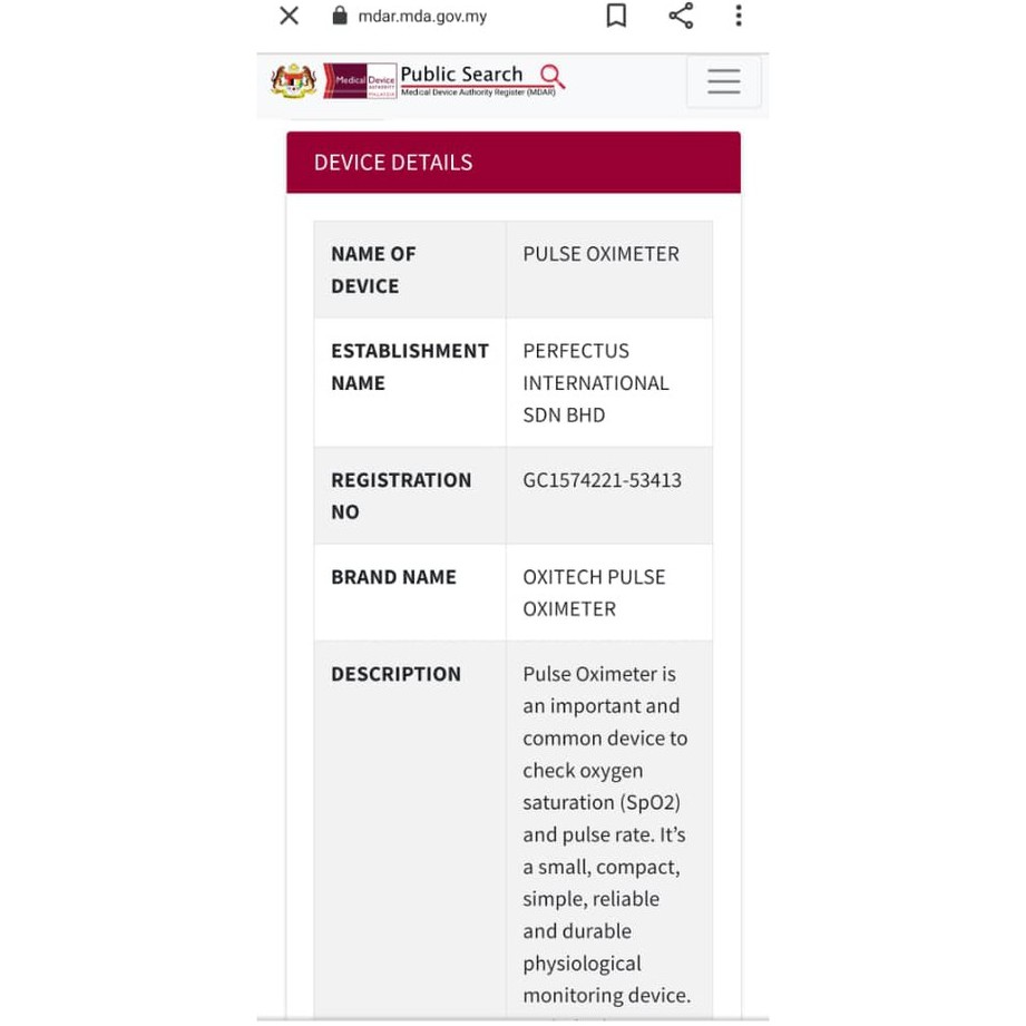 OXITECH PULSE OXIMETER (MDA CERTIFIED)