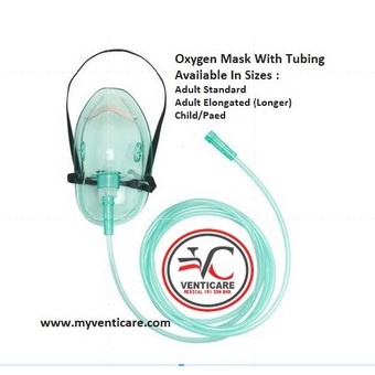 OXYGEN MASK ADULT STANDARD, ADULT ELONGATED, CHILD, INFANT 1PC WITH 7 FEET TUBING