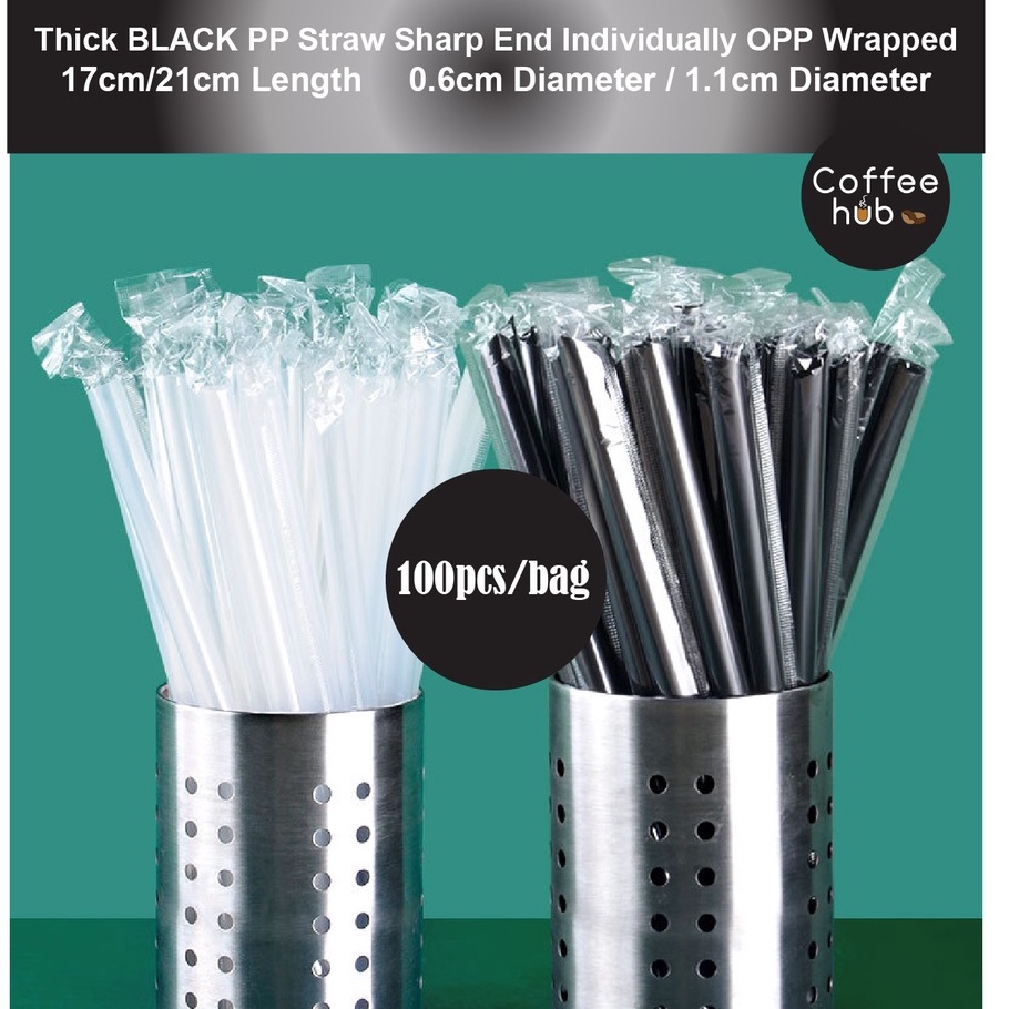 (READY STOCK)Coffee Boba Milk Tea PP Straw Café Supplies 21cm Length ±100pcs/bag 0.6cm 1.1cm(OPP Wrapped)