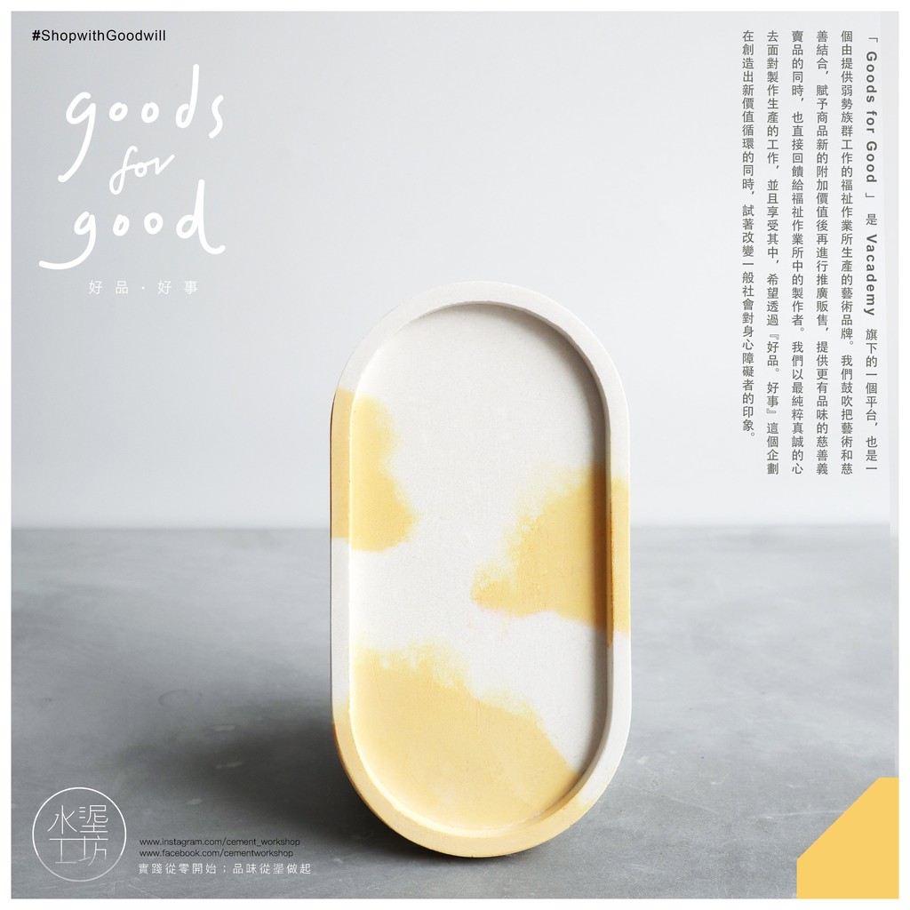 Oblong Oval Handmade Cement Accessories Plate (White Yellow) Vanity Tray / Soap Dish / Candle Dish