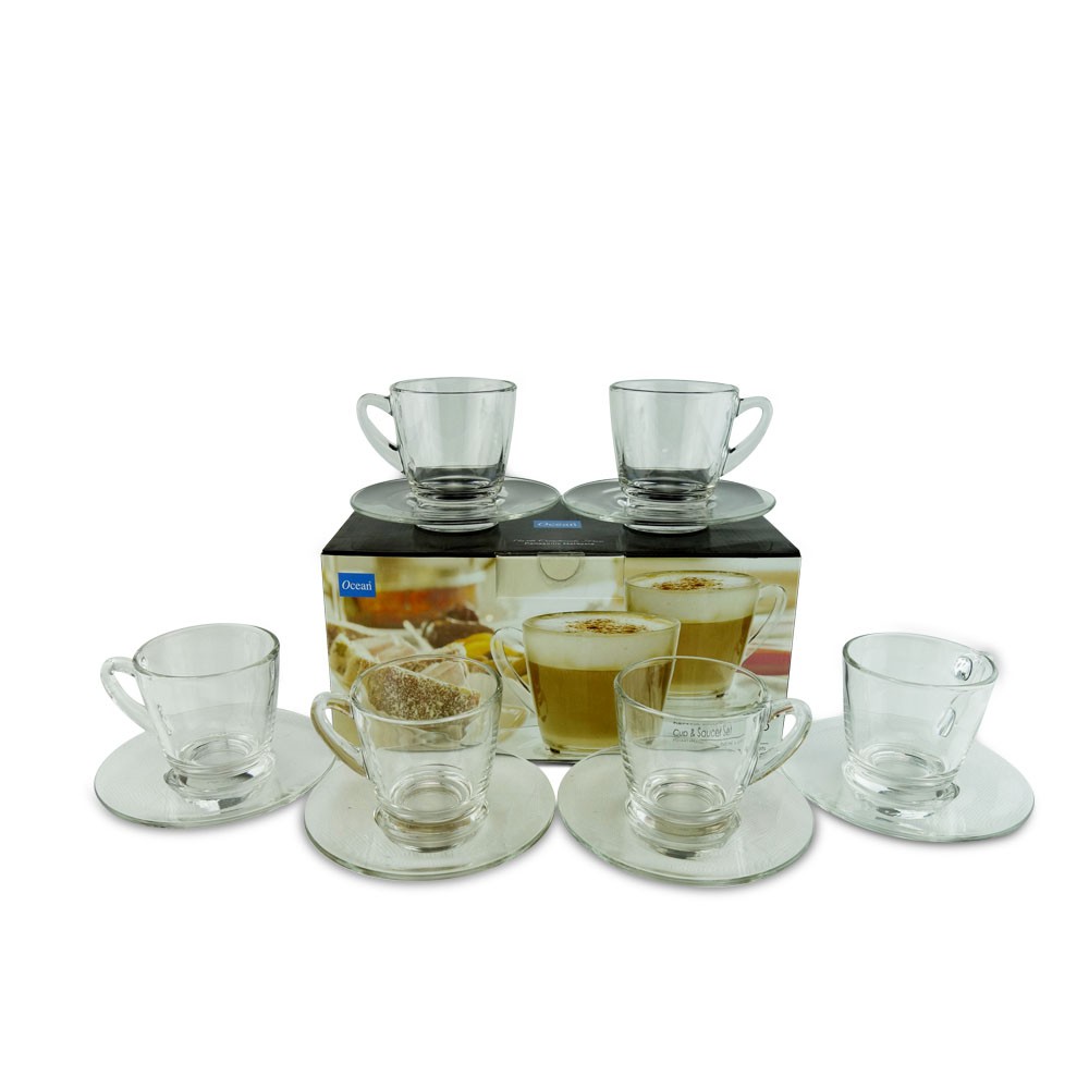 Ocean Glass Coffee Cup & Saucer Set (6 PCS)
