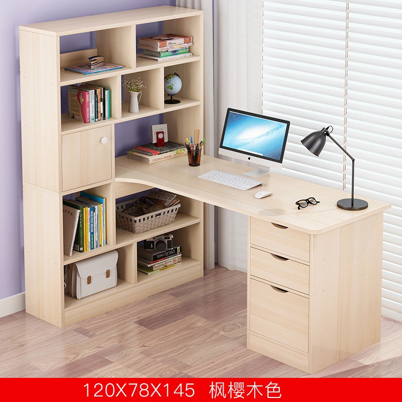 Office Computer PC Laptop Table 120x78x145cm Workstation Study Home Desk with Bookshelf Cabinet Storage Modern Meja