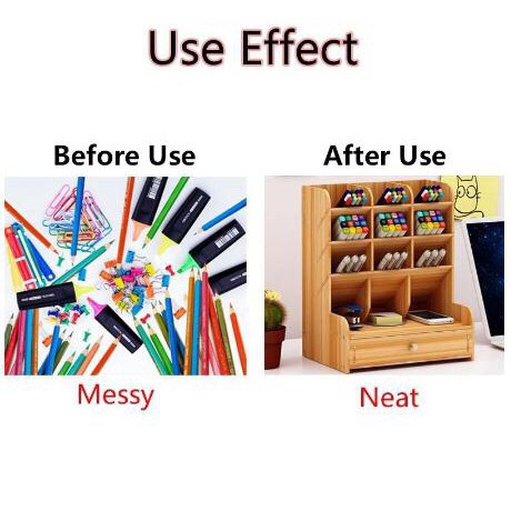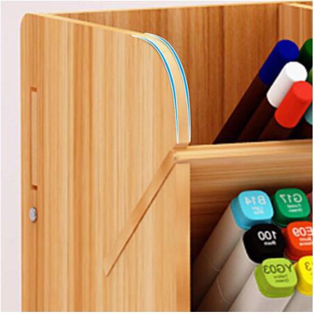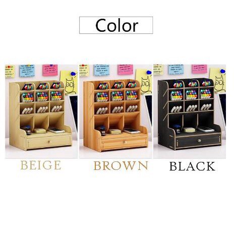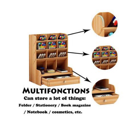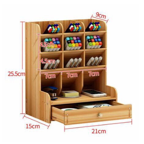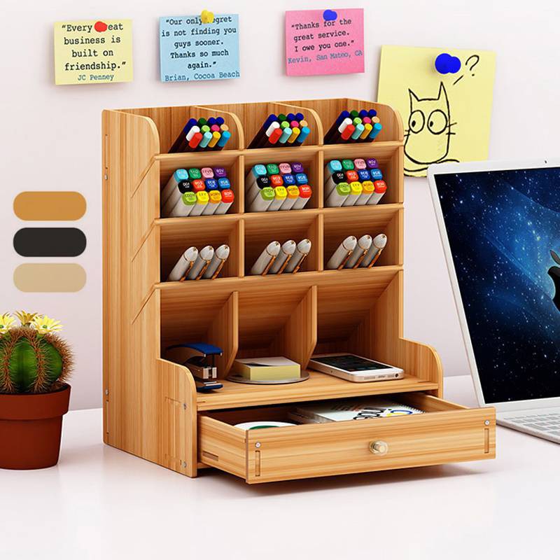 Office Student Desktop Multi Layer Pen Holder Wooden Desk Organizer Stationery Storage With Drawer