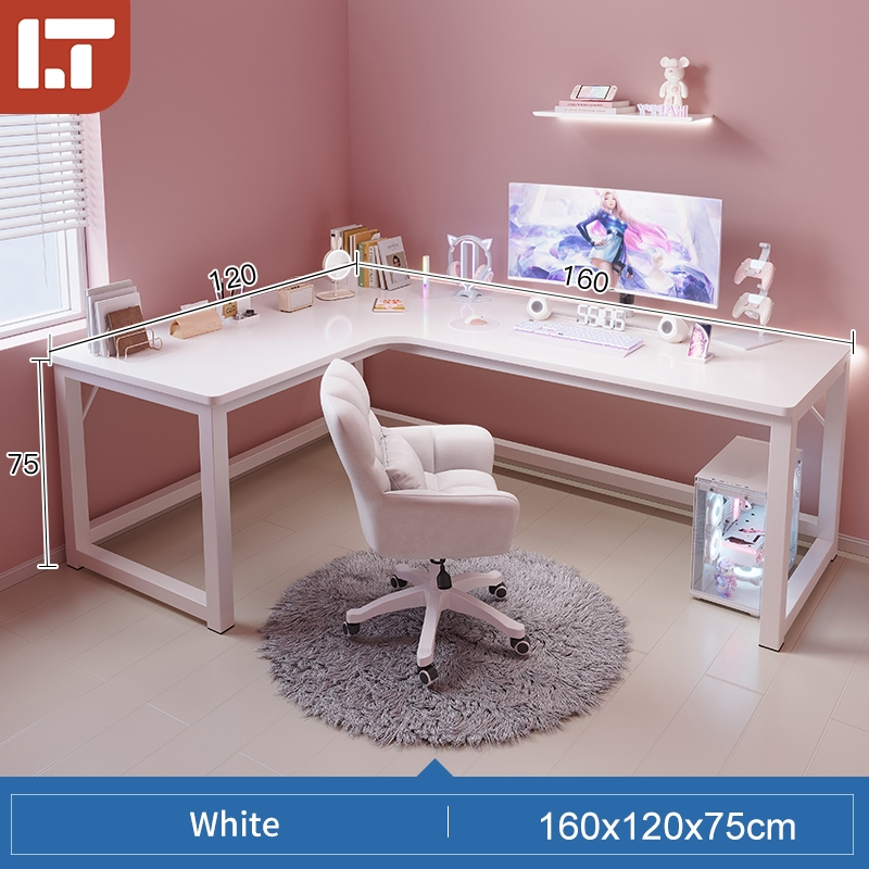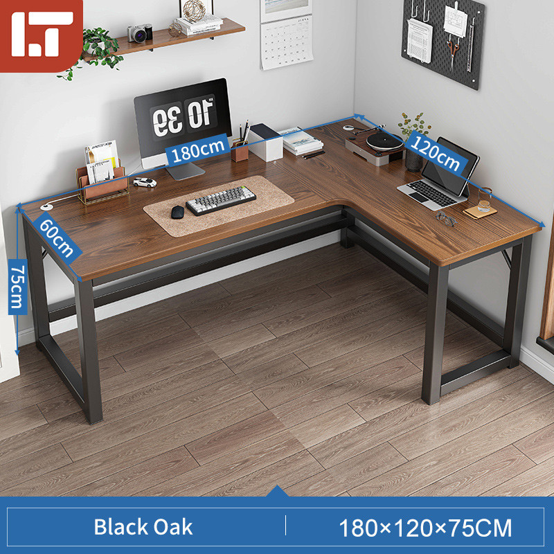 Office Table 180CM L Shape Table Carbon Fiber Computer Table with CPU Stand Study Table Meja Komputer Working Table Meja Office L Table