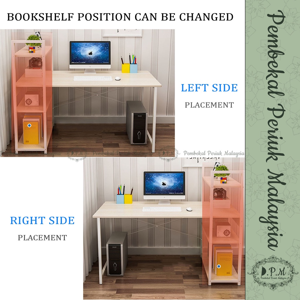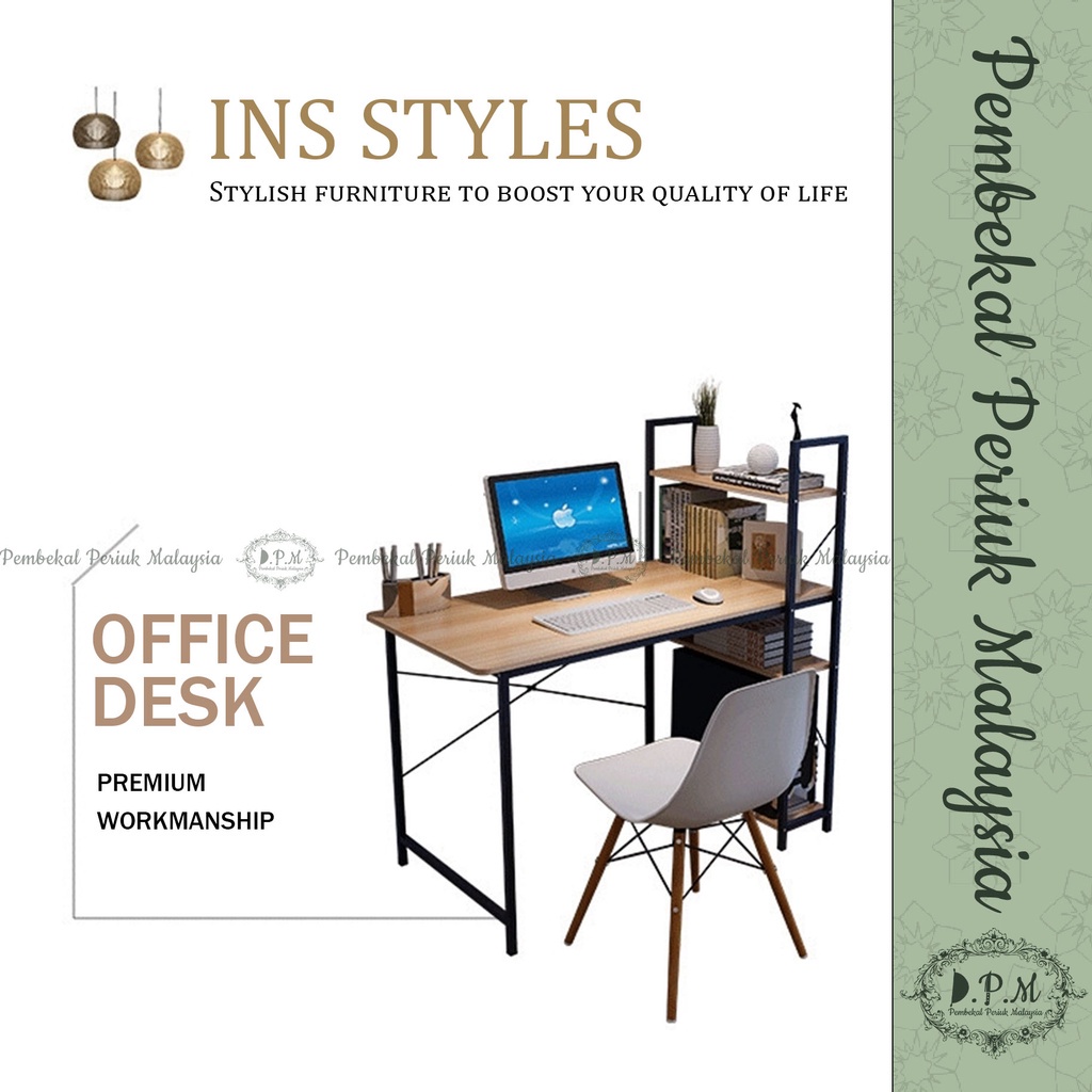 Office Table/Computer Table With Book Shelf / Meja Office Dengan Rak Buku (READY STOCK)
