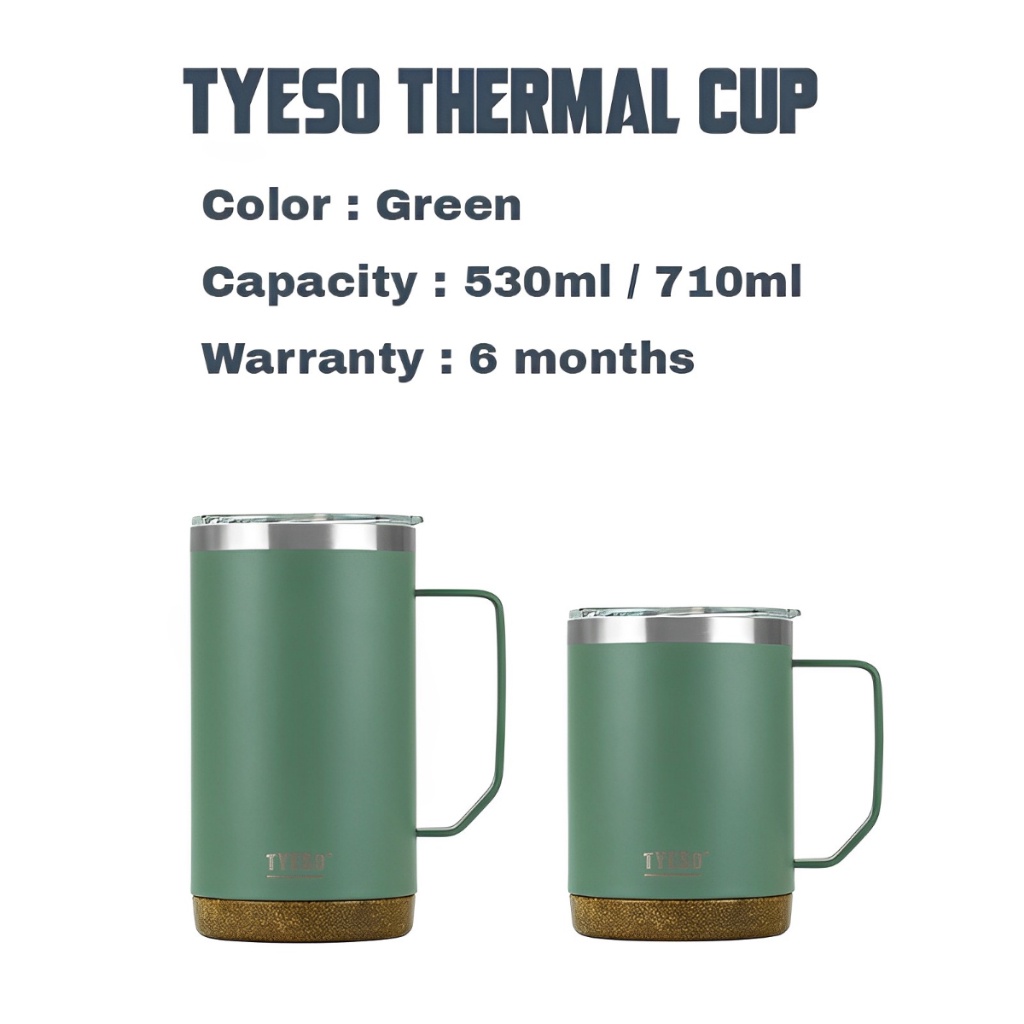 【AUTHORIZED DEALER】Tyeso Thermal Cup With Handle Grip 530ml/710ml Insulated Flask Vacuum Tumbler Water Cup Coffee Mug 杯子