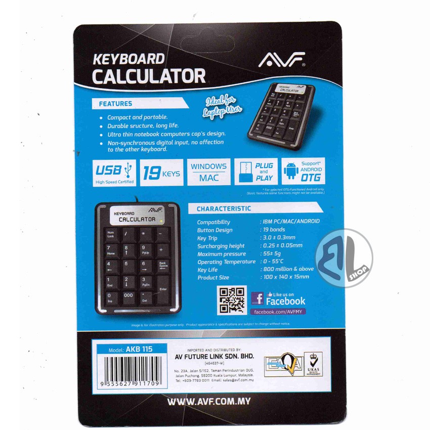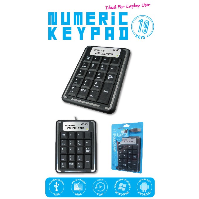 Official Avf AKB115 19 Keys Numeric Keypad / Keyboard Calculator Ideal for laptop users.