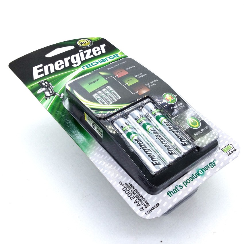 Official Energizer Recharge Base/Maxi/Pro Includes 4x AA | Rechargeable AA and AAA Batteries | Bateri 100% Original