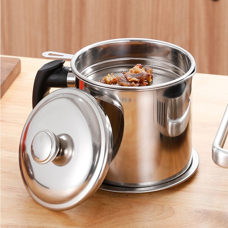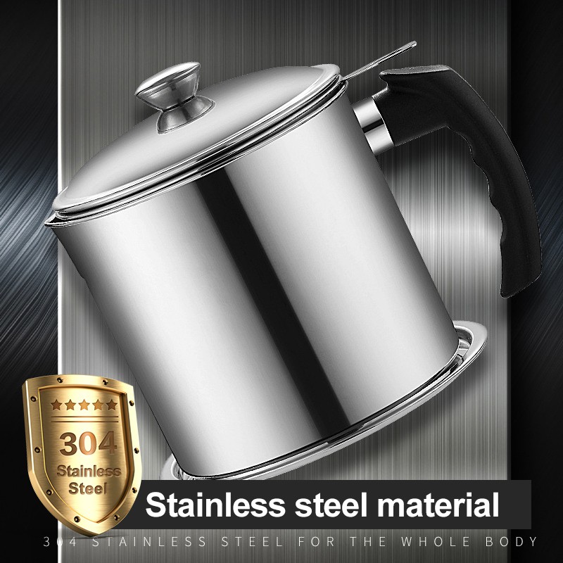 Oil Pot 1.8L 304 Stainless Steel Oil Pot Grease Keeper Oil Filter Pot Cooking Oil Pot Oil Strainer Container Pot