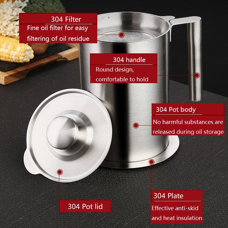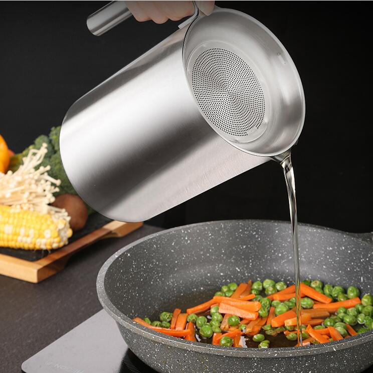 Oil Storage Grease Keeper Grease Strainer Pot Grease Container with Mesh Strainer Stainless