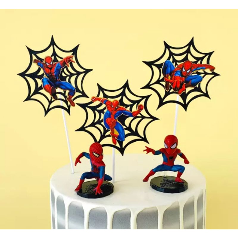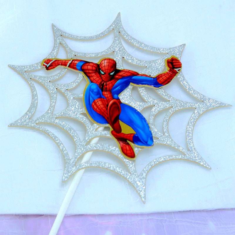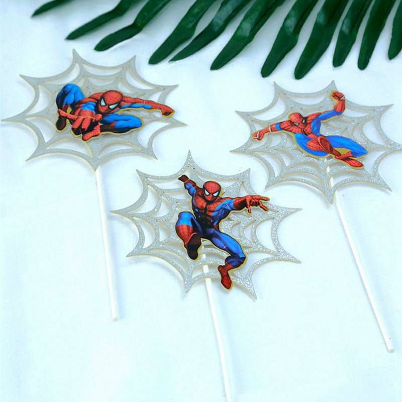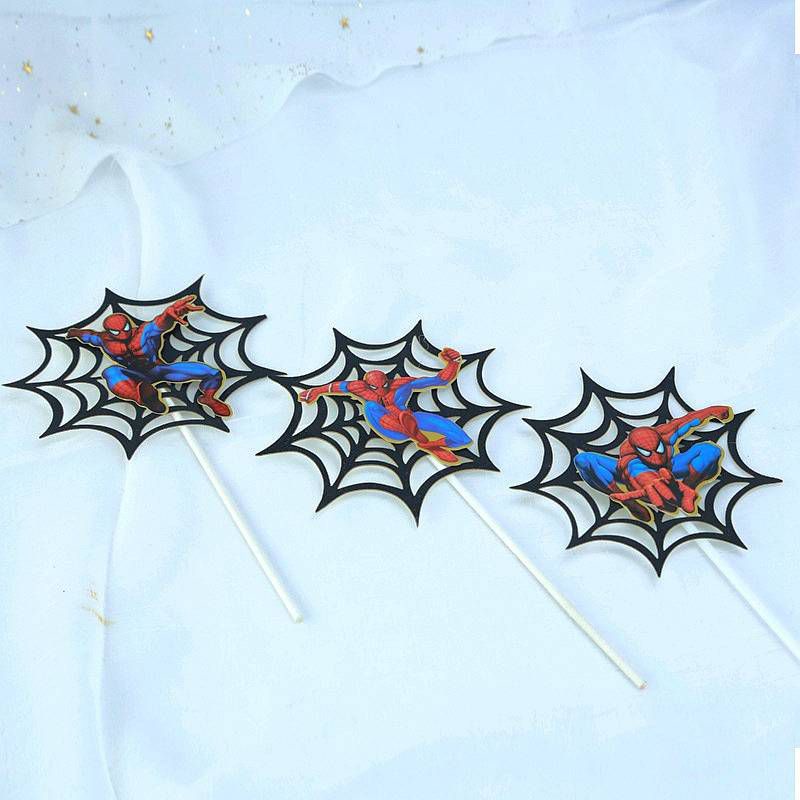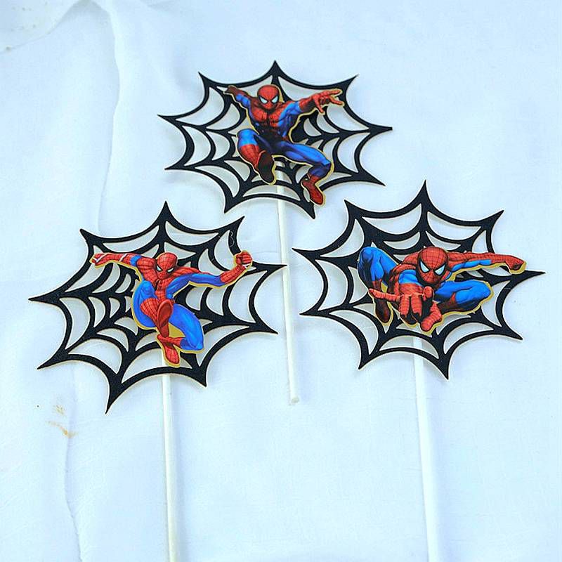 Ok 3pcs/set Avengers Heroes Spiderman Spider Web Cake Topper Boy Happy Birthday Cake Decoration