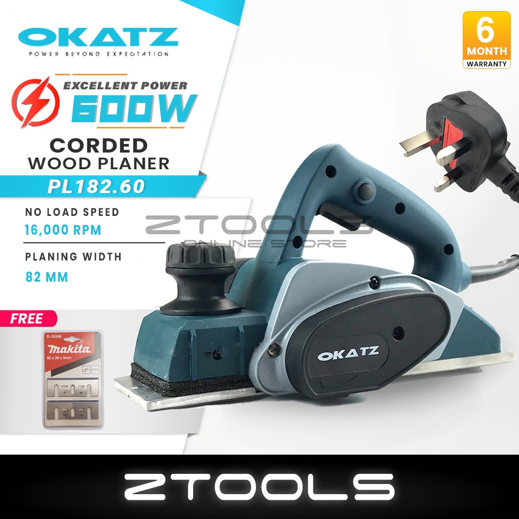 Okatz 600W Electric Wood Planer Heavy Duty Mesin Ketam Kayu Elektrik Makita Mata Planer Blade