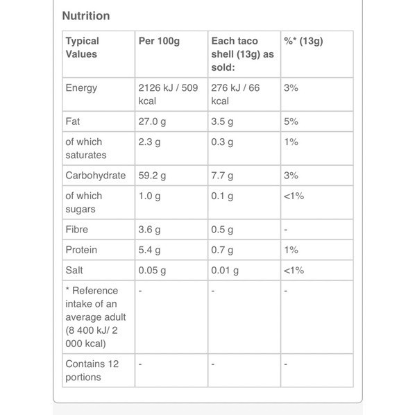 Old El Paso 12 Taco Shells 156G (UK)