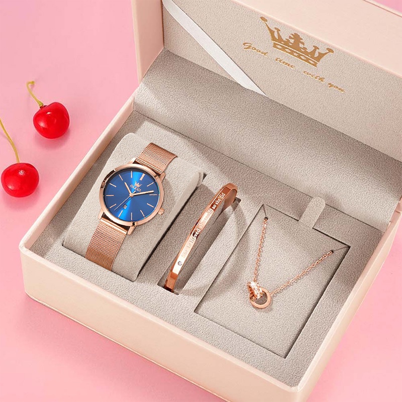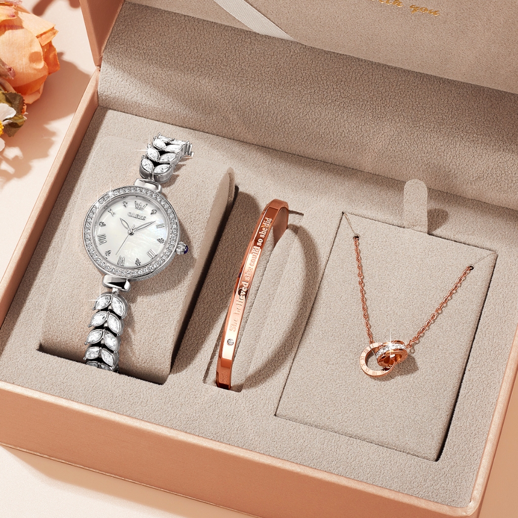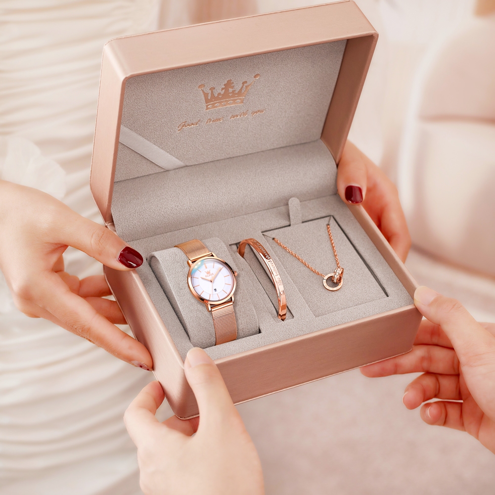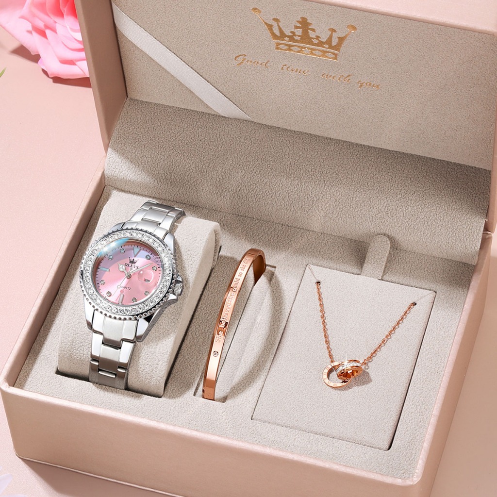 OLEVS Jam Tangan Perempuan Original Waterproof Quartz Luxury Fashion Ladies Watch Women Birthday Gift Box Set 5869