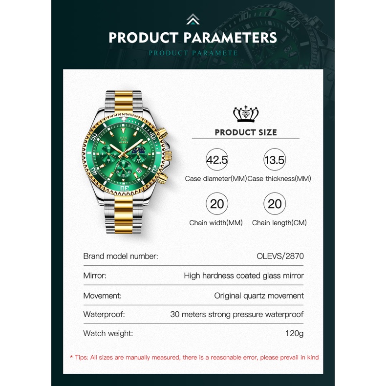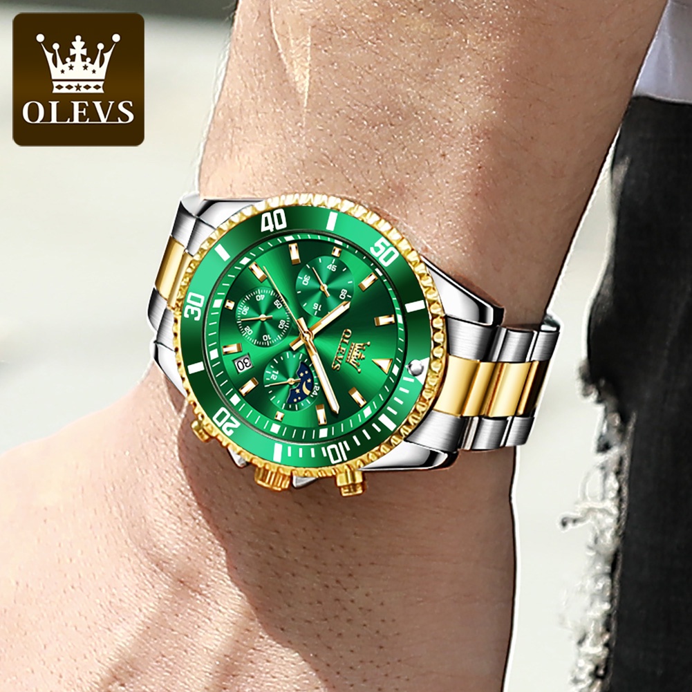 Olevs Men's Watch Waterproof Sport Luxury Stainless Steel Quartz Jam Tangan Lelaki Original