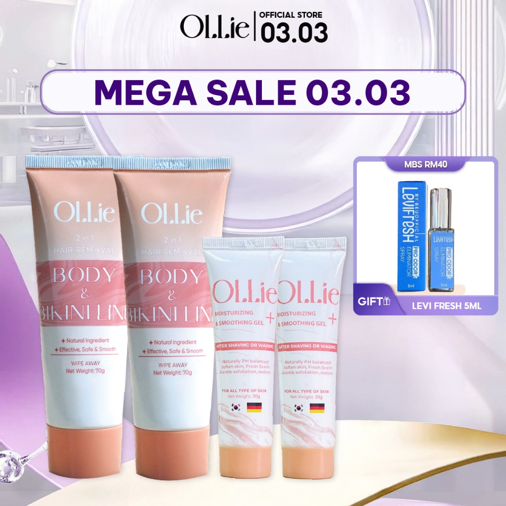 Ollie Hair Removal Cream (70g x 2 Pcs) + Ollie Serum To Prevent Hair Regrowth (2 Pcs x 30g)