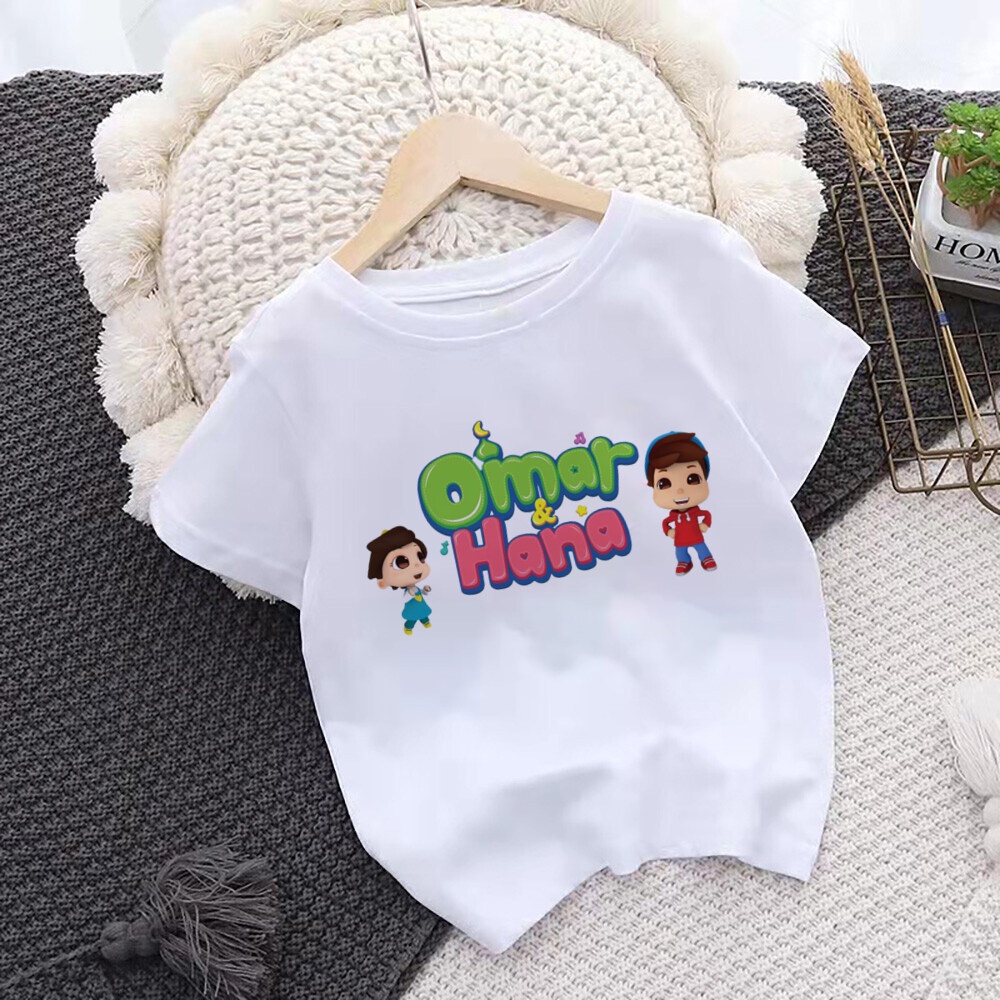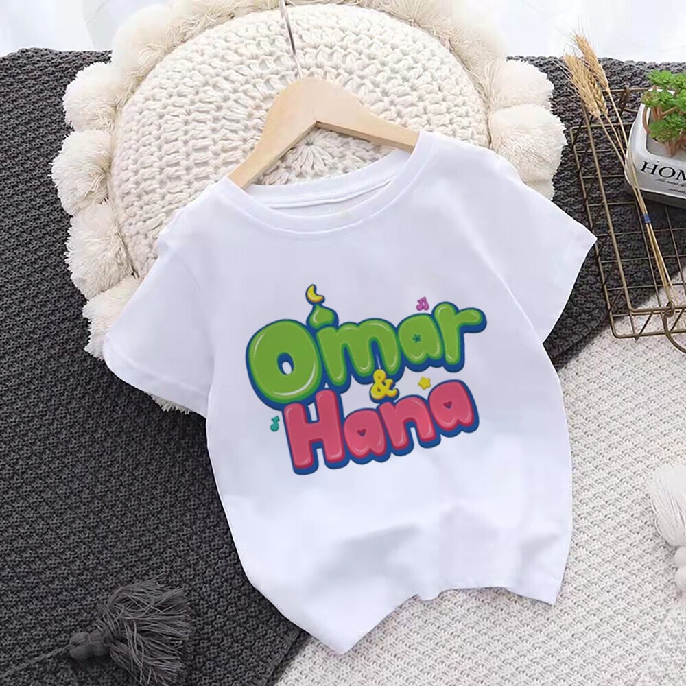Omar & Hana Print T-shirt Children Cute Cartoon Girls/Boys Funny Animal Baby Clothes Kids Summer Tshirt