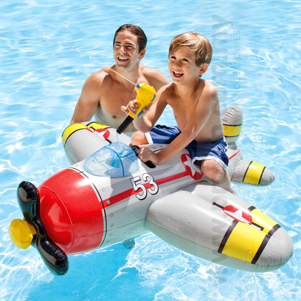 Ombak9 Intex Water Gun Plane Ride-On Inflatable Classic Retro Plane Swim Pool Float Floaties Children 3+ (WS Aeroplane)