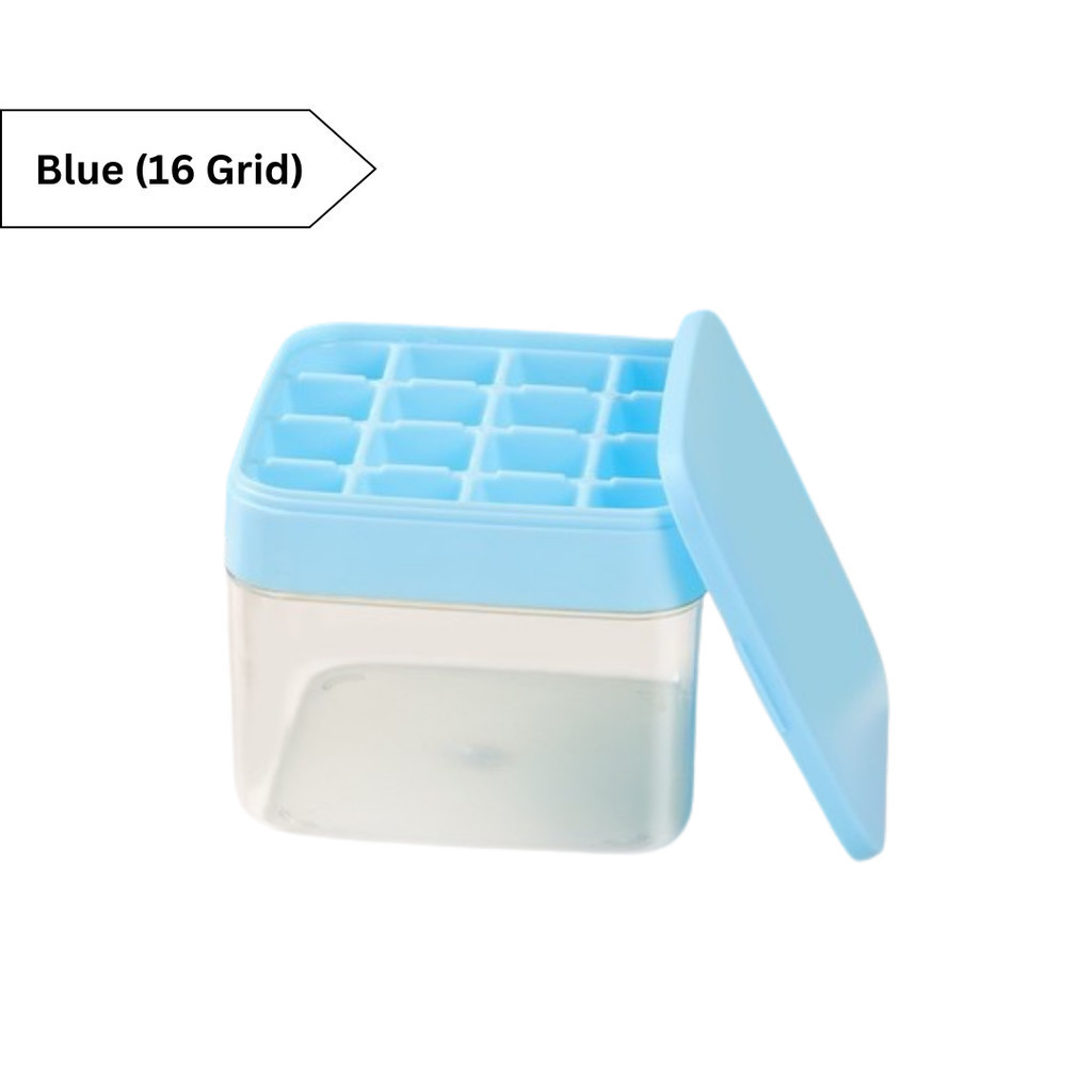 One Button Push 32/64 Grid Ice Cube Maker Frozen Ice Cube Storage Box with Cover Ais Box Kecil Tahan Sejuk Peti Ais